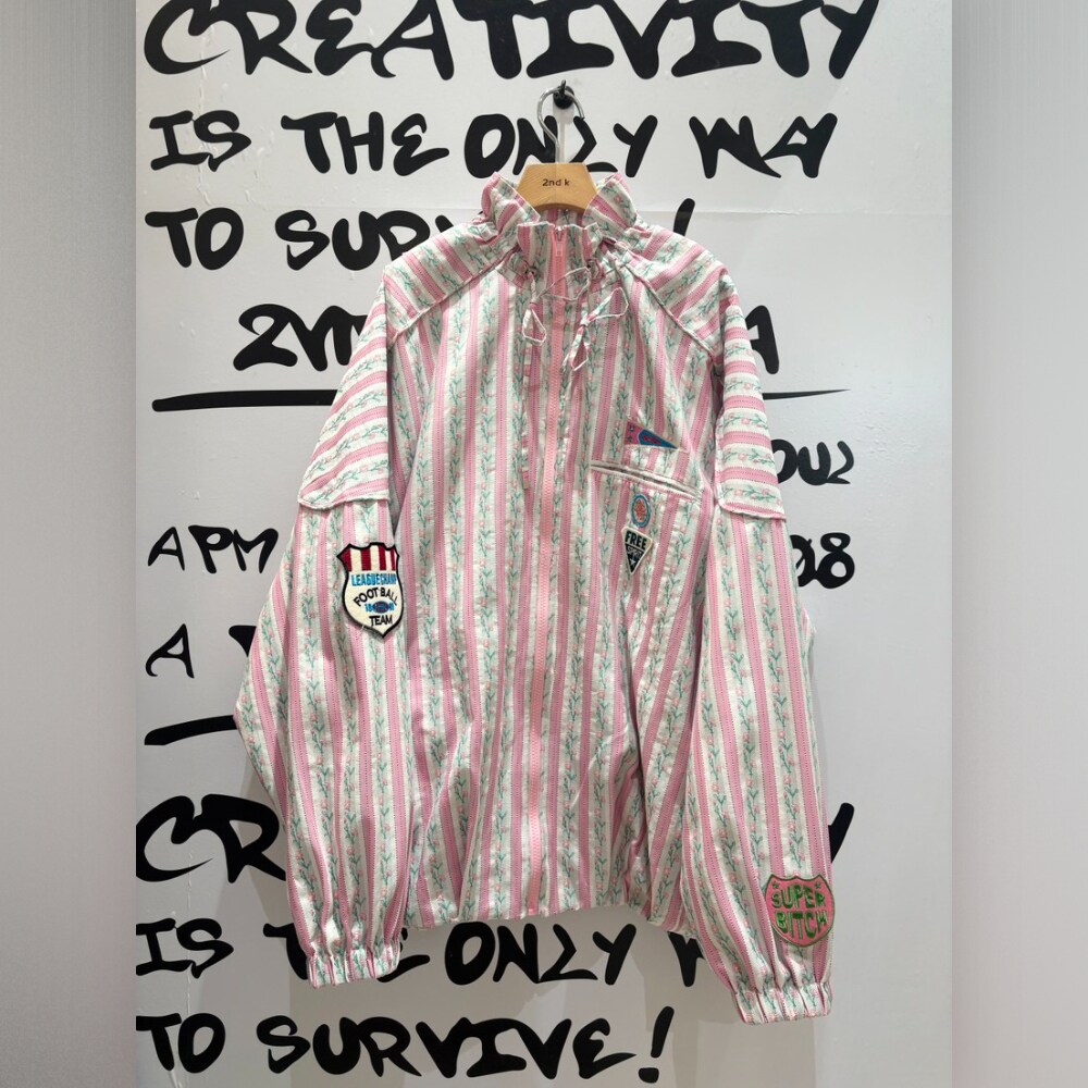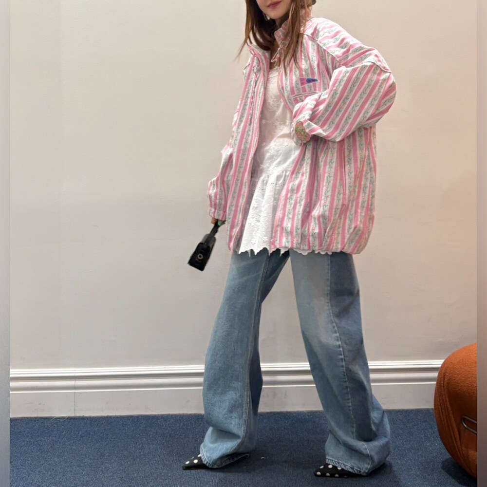 2ND K韩国东大门正品代购26春款 彩色粉色条纹休闲宽松拉链外套