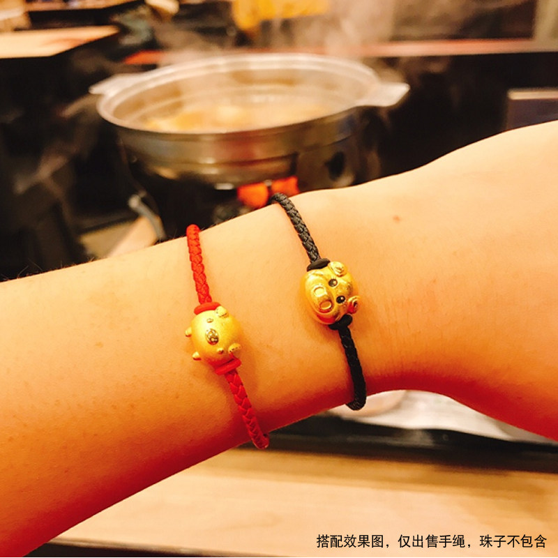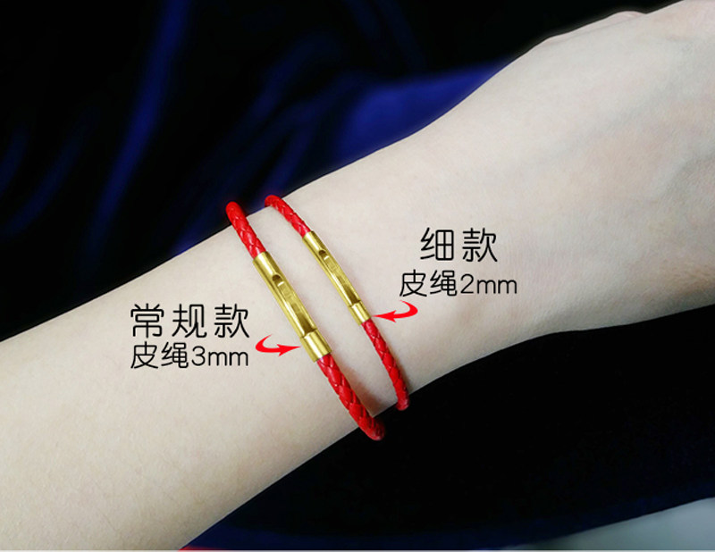 皮绳手绳手工编织红绳穿3D硬金珠男女款本命年情侣手链鼠年转运珠