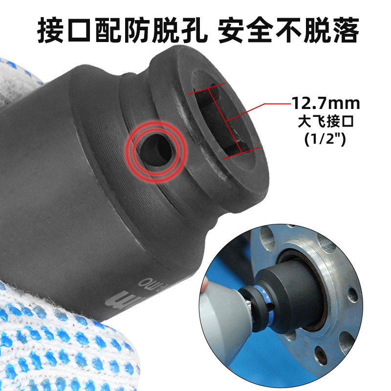 加长六角风炮套筒电动扳手大飞套筒头手电钻螺丝螺母套头套装17mm