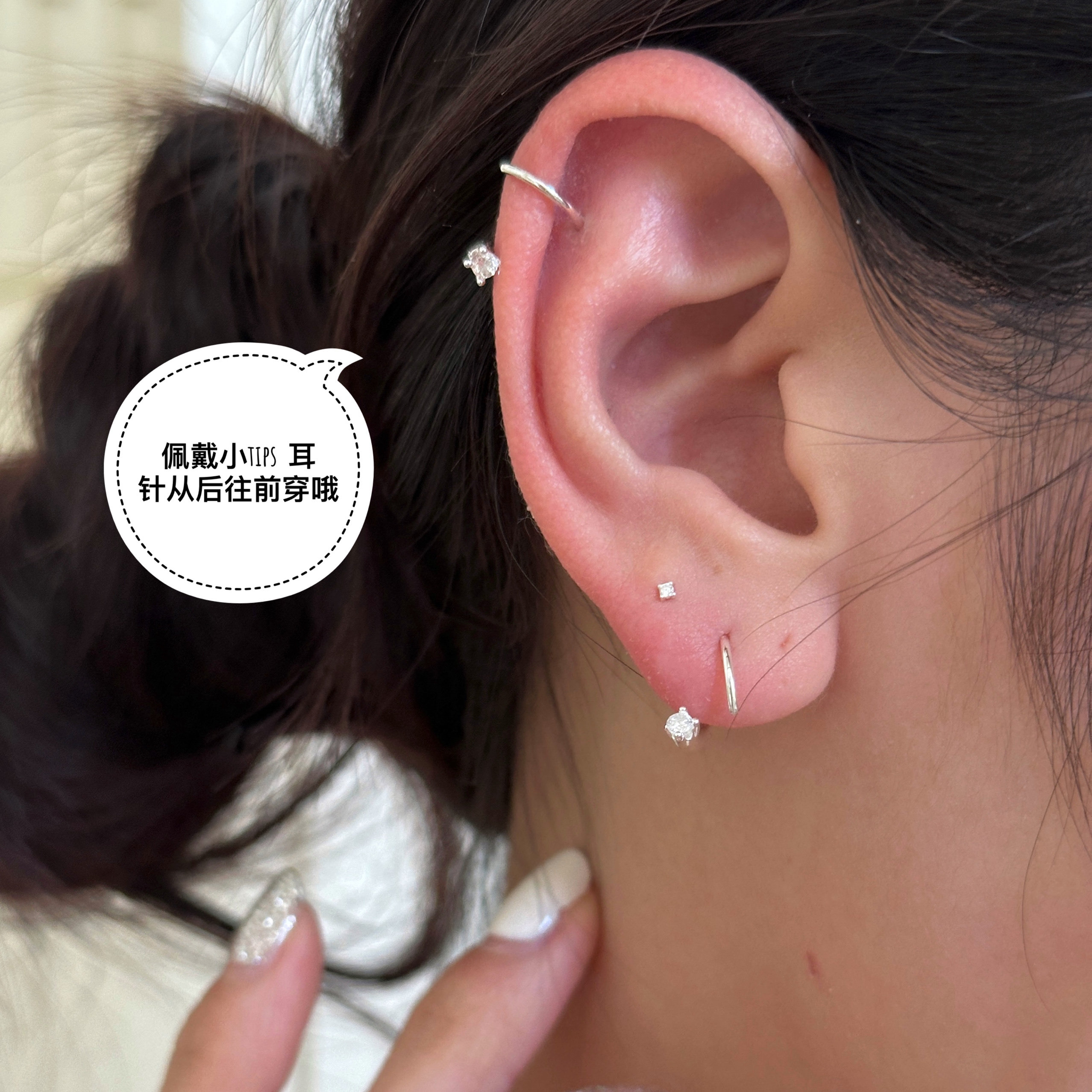999纯银小流星尾巴养耳环不用耳堵开口小圈耳钉锆石闪亮ins风小众