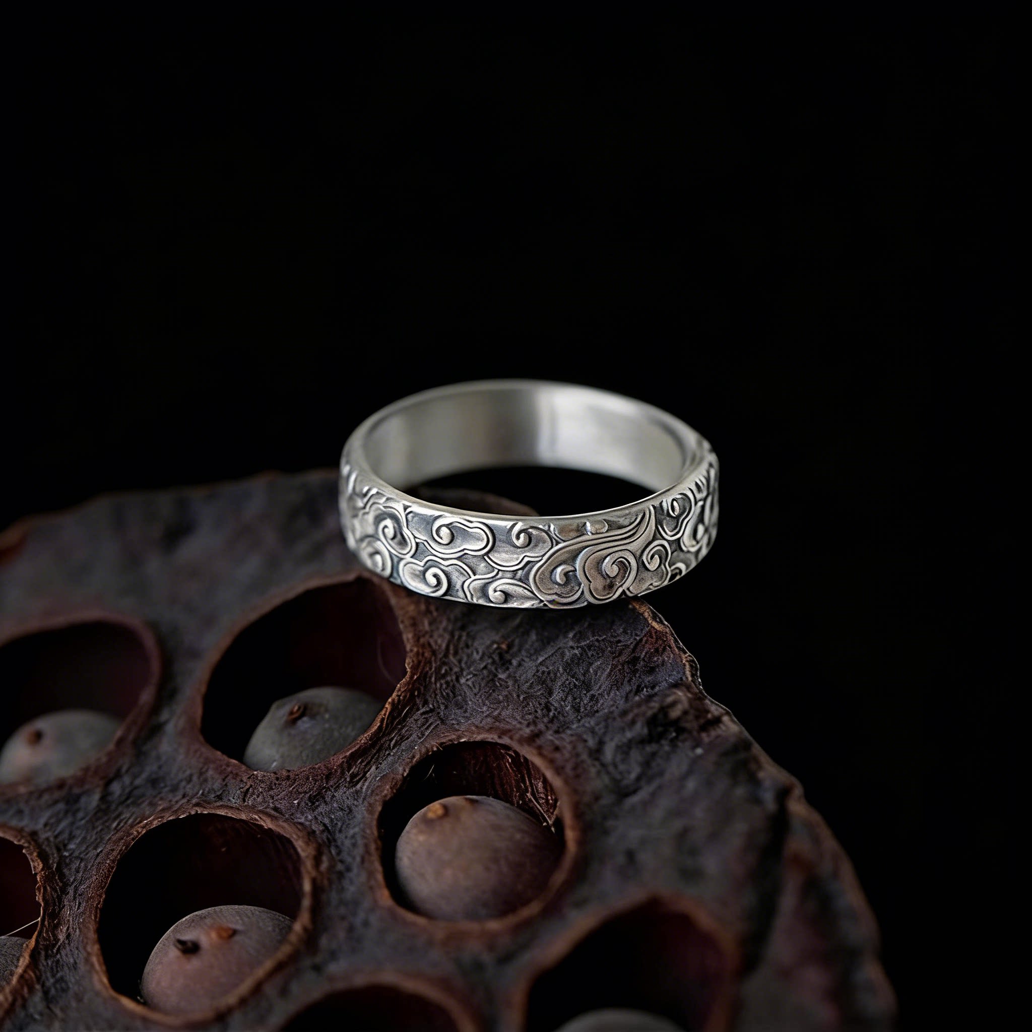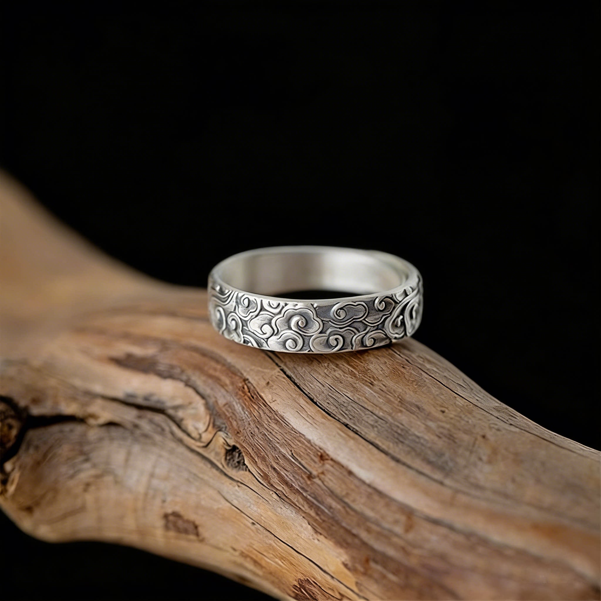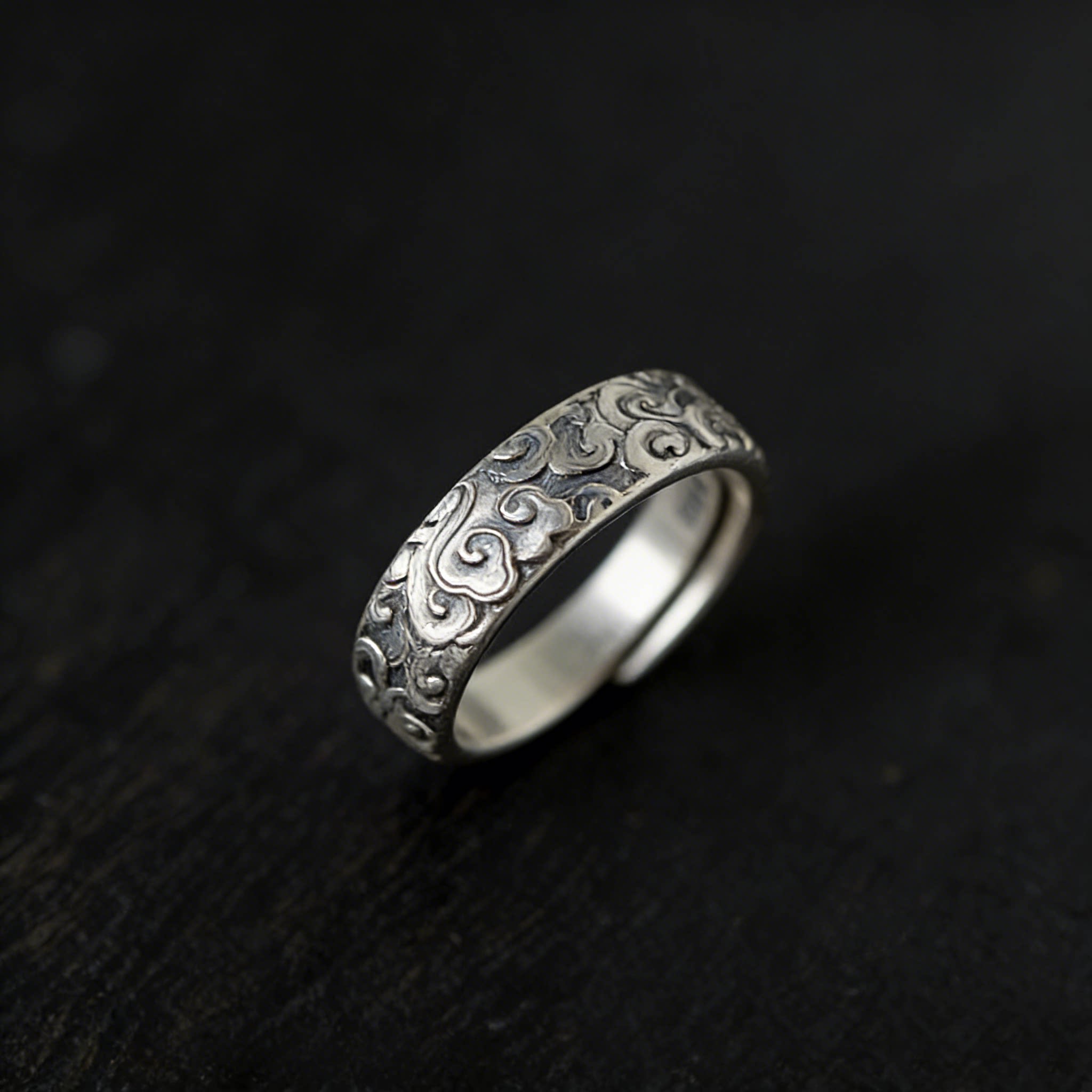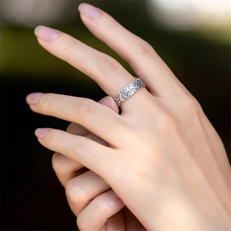 「道系」道家银饰品云涌足银999祥云雕刻手工云朵复古波浪戒指环