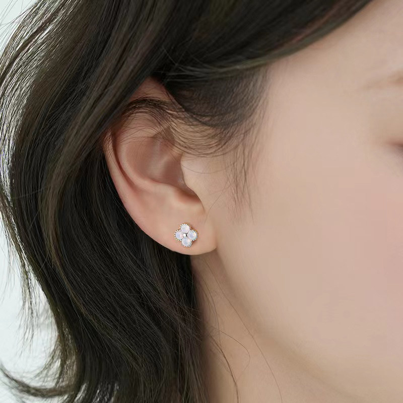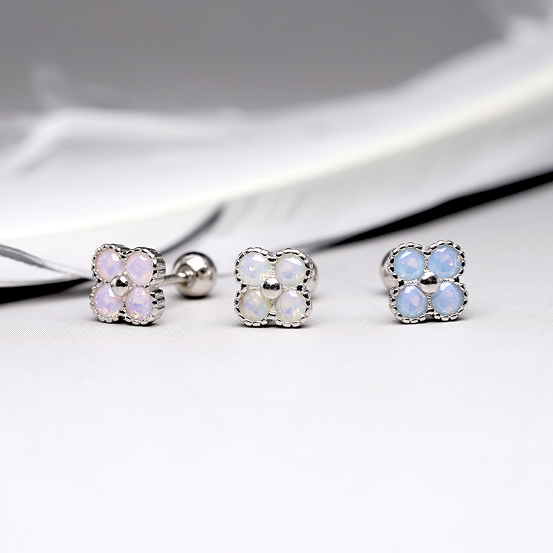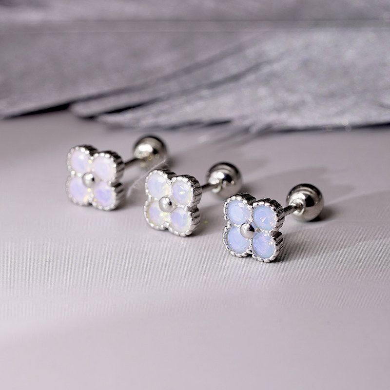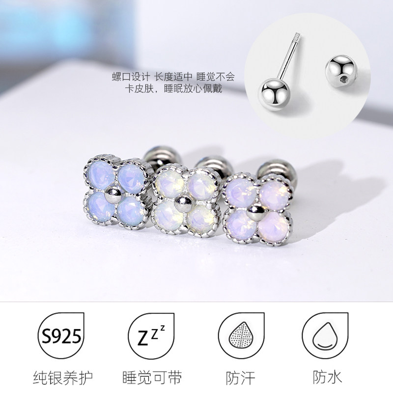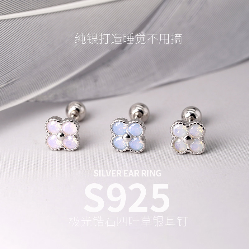 玛奇耳饰s925纯银四叶草耳钉女睡觉免摘养耳洞螺丝扣耳蜗耳骨耳钉