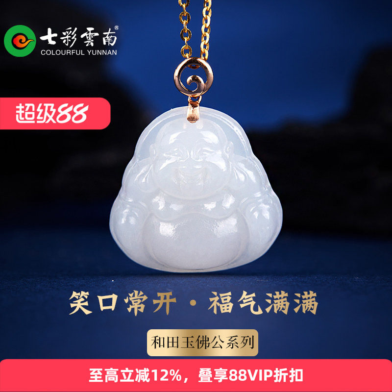 七彩云南天然和田玉佛公国风新中式吊坠女士软玉挂件精致设计礼物