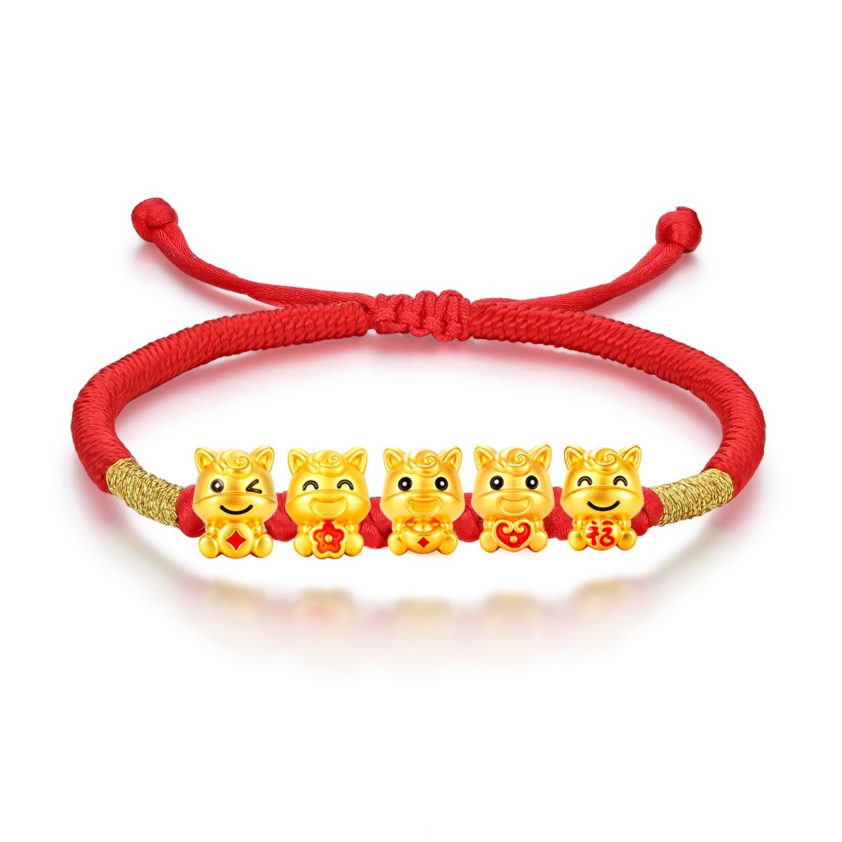 CEMNI/千年珠宝黄金生肖马手链足金999五福马转运珠手绳新款送礼