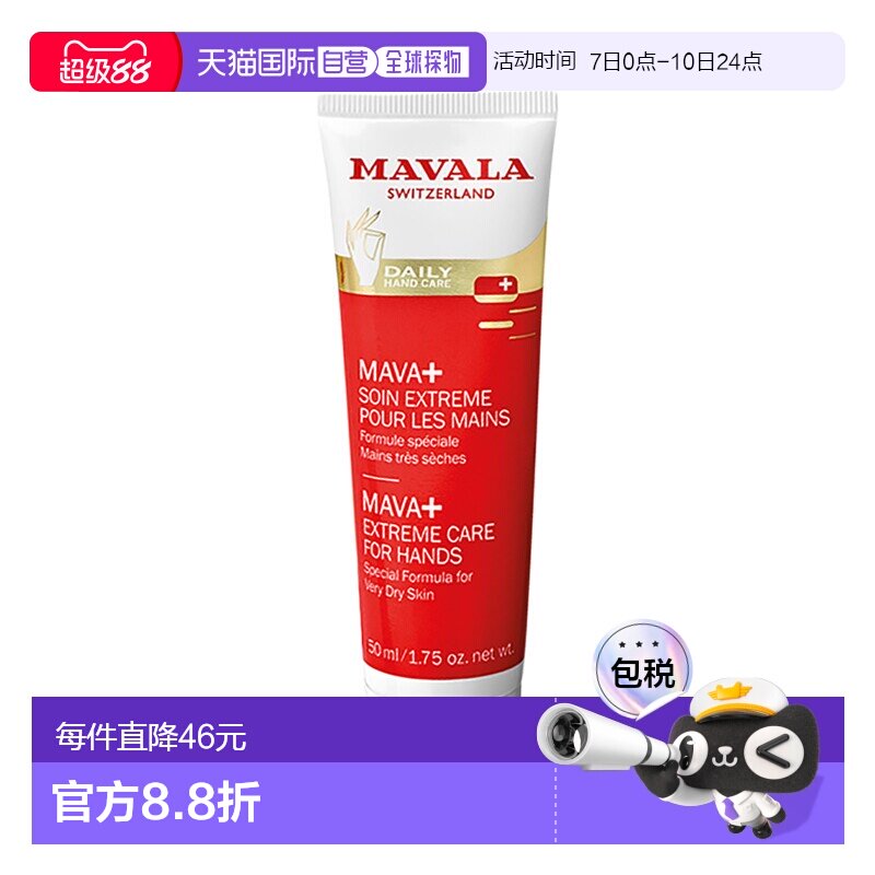 欧洲直邮Mavala保湿护手霜50ml滋润补水柔嫩光滑水润温和细腻修护