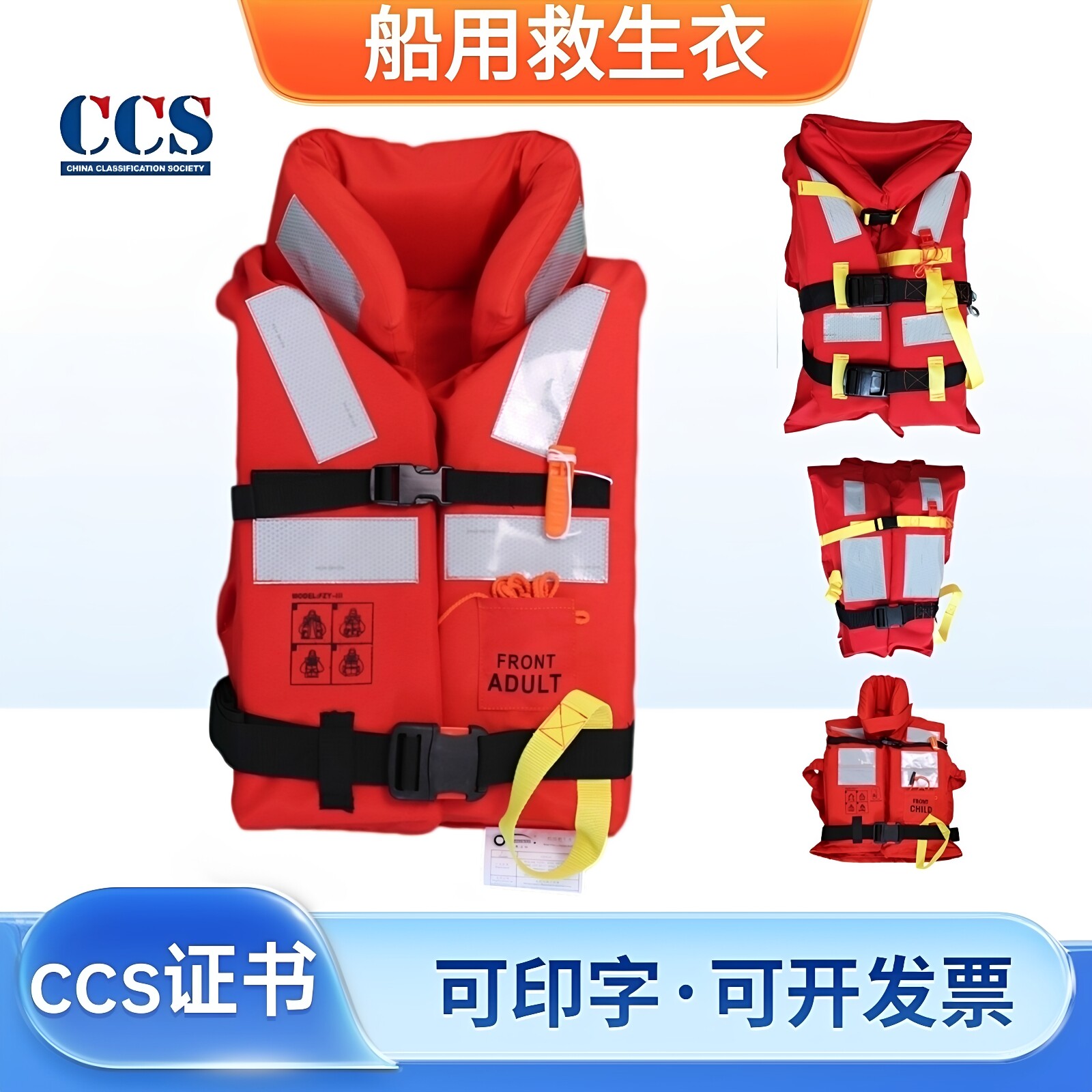 船用成人救生衣海事船检大浮力船员救身衣150N船检带灯儿童救生衣