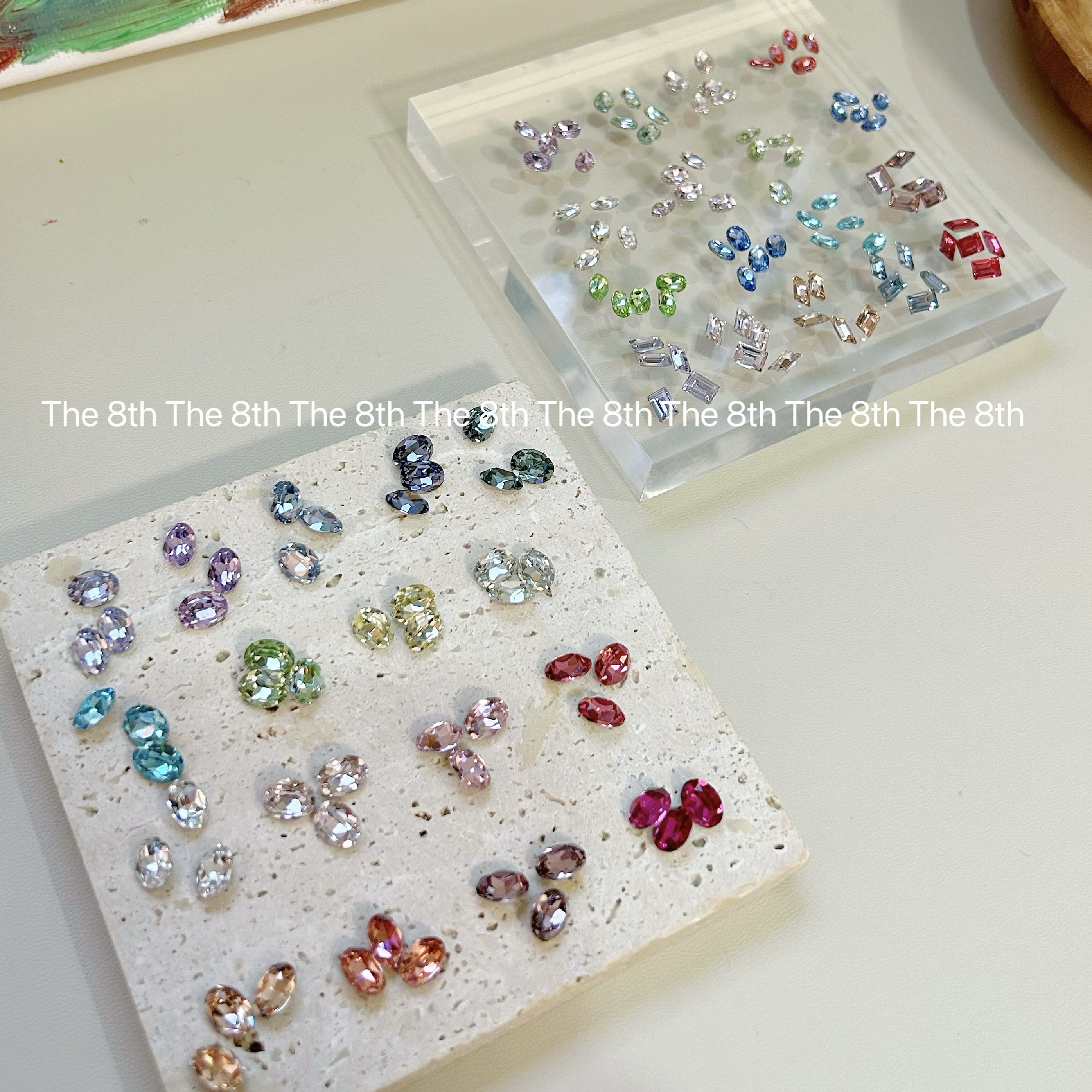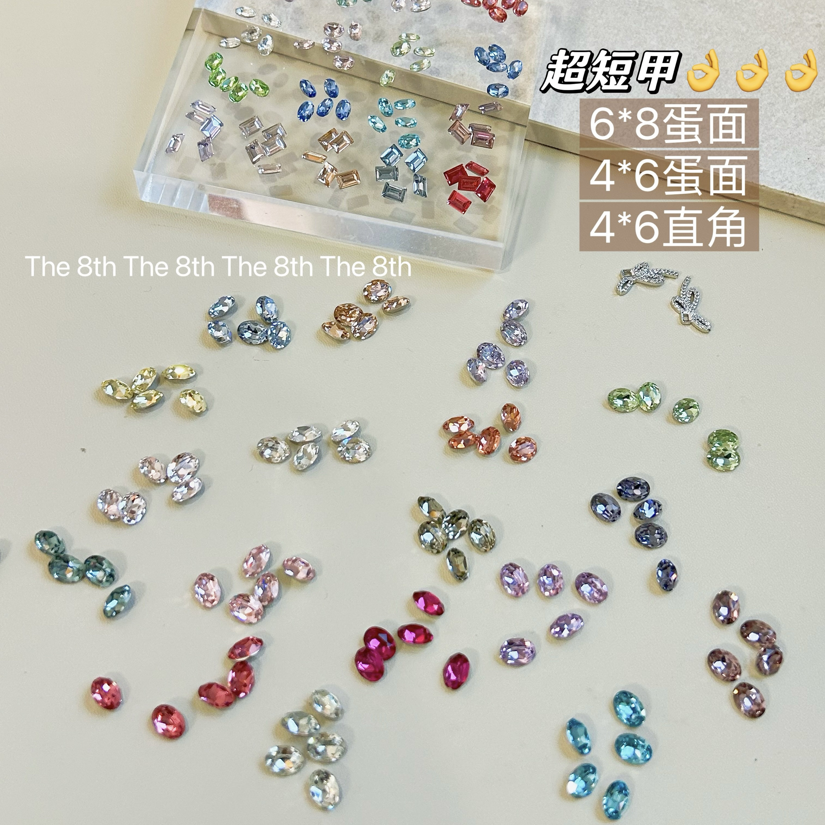 The 8th1:1还原华子超闪K9美甲钻饰品彩色小椭圆冰糖蛋面直角