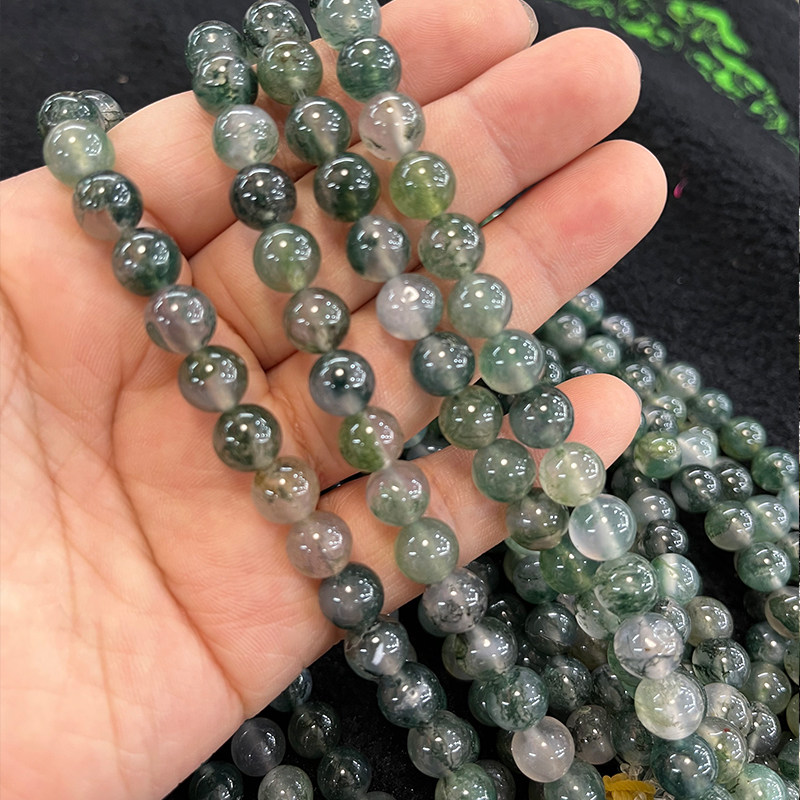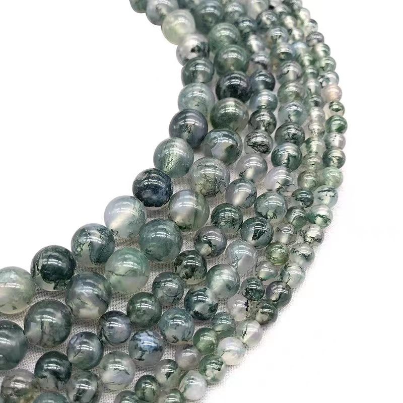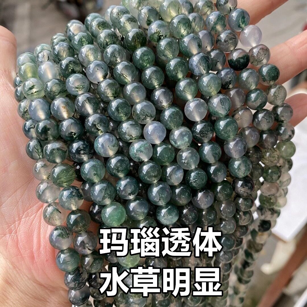 A级天然水草玛瑙散珠天然石圆珠3-10M饰品配件 DIY手链项链半成品