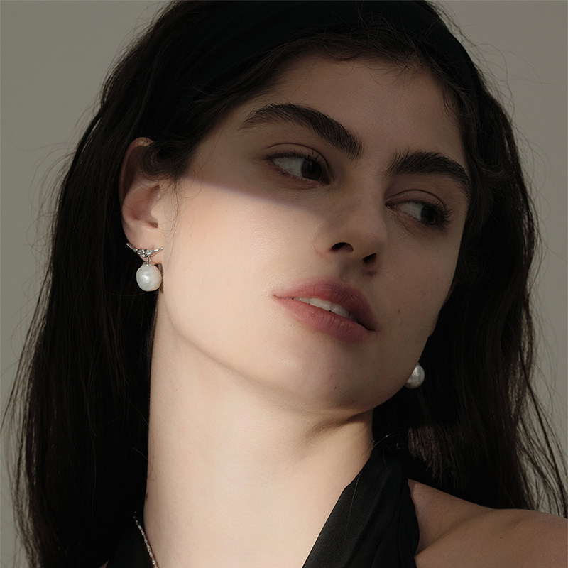 杨雨婷同款Unfolds浮舟天然珍珠耳环法式个性高级感925银耳针耳钉
