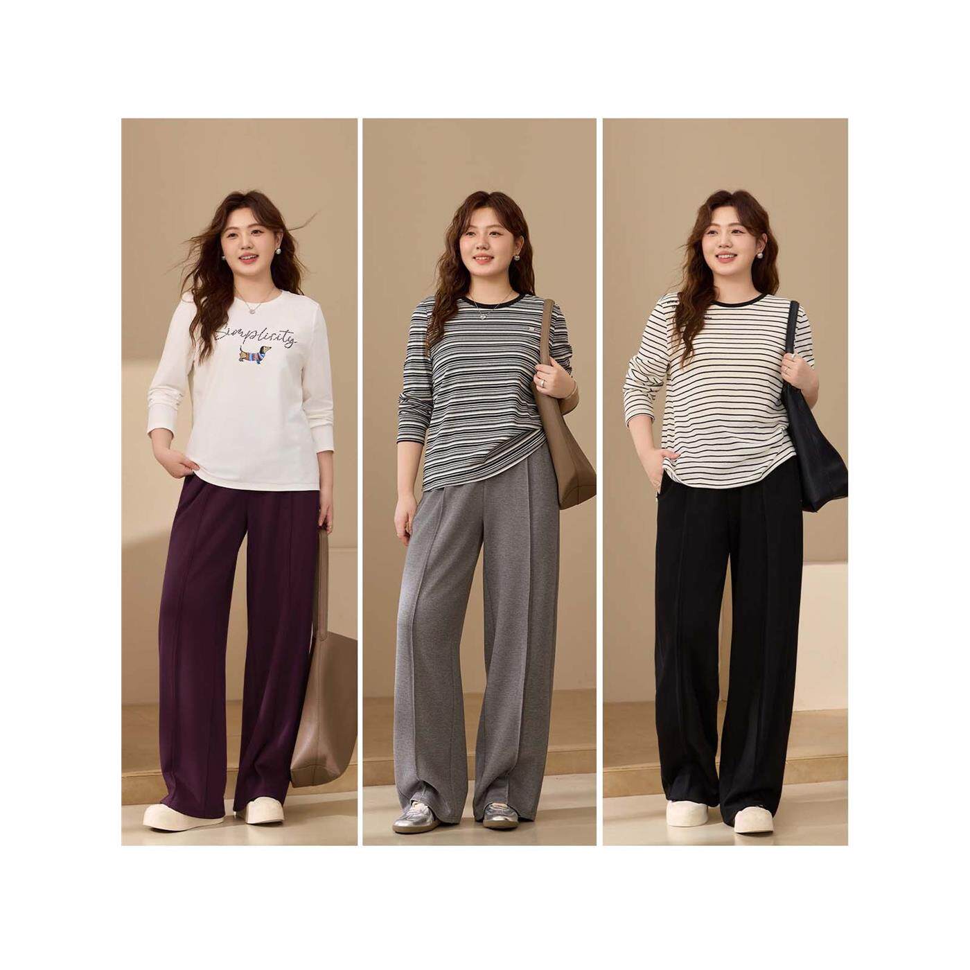 【舒适松紧腰裤子】纤莉秀大码女装休闲百搭运动裤胖mm2025秋新款