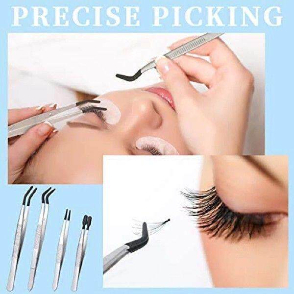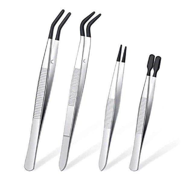 4 Pieces Tweezers Set with Rubber Tips Tweezers PVC Coated