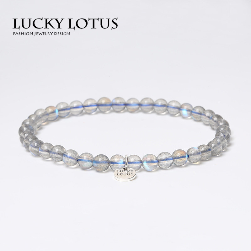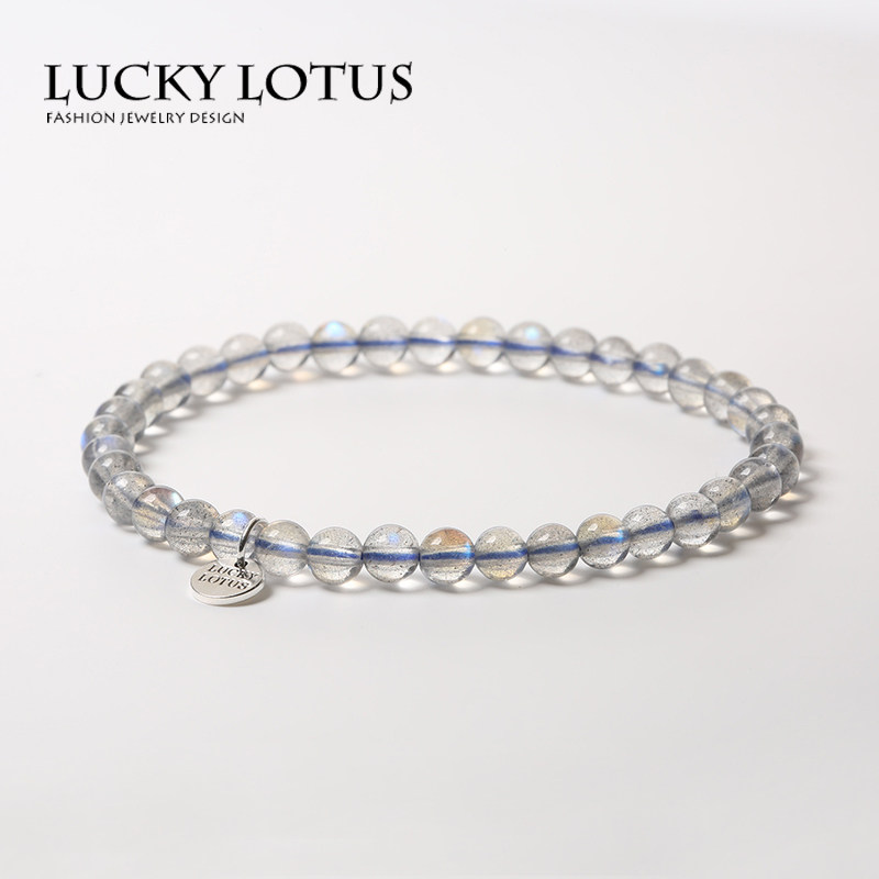 LUCKYLOTUS极细蓝彩光灰月光石手链水晶拉长石手串男女情侣包邮