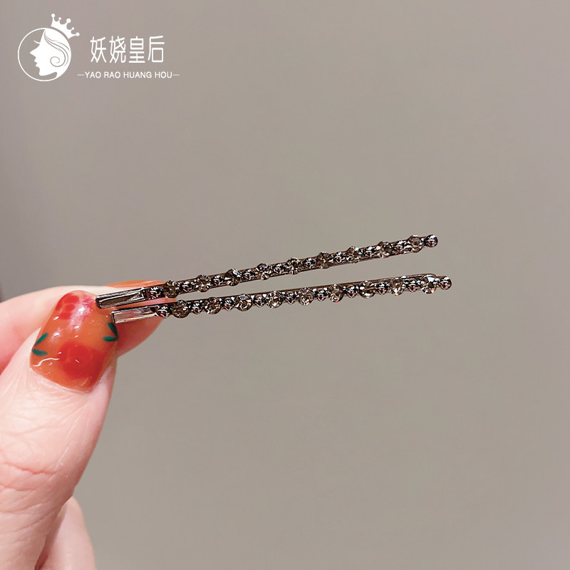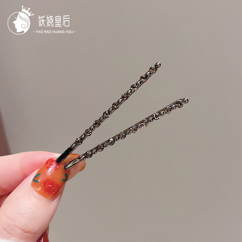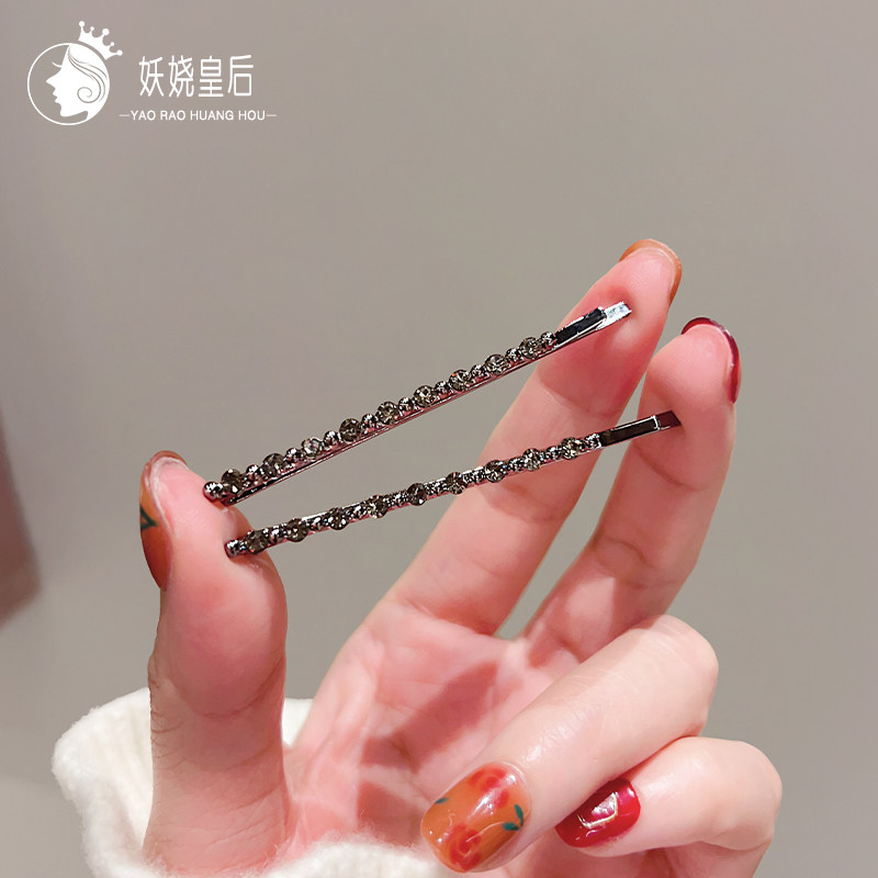 精致发卡女黑色一字夹高级感水钻侧边夹子头饰气质碎发刘海夹对夹