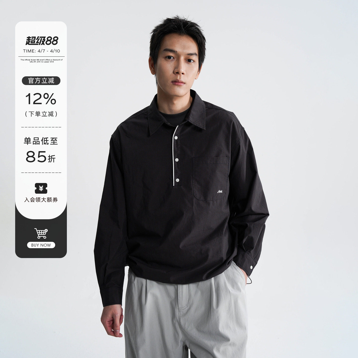 AWT 26SS 〔细格色织〕翻领嵌条半开领宽松衬衫