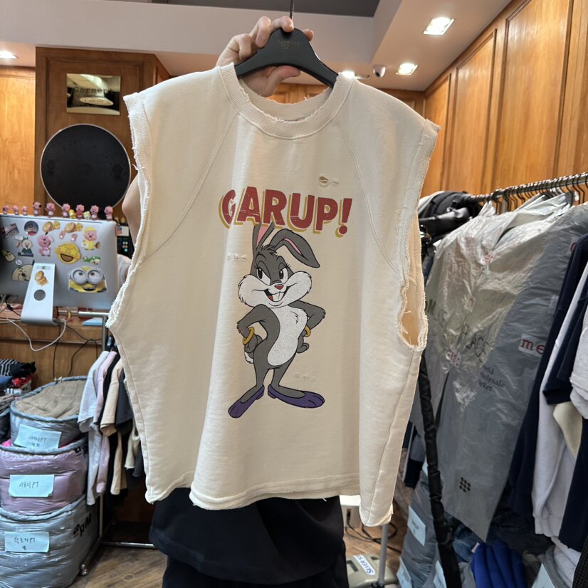 GARMENT韩国东大门正品代购26春款 圆领毛边做旧卡通兔子休闲背心