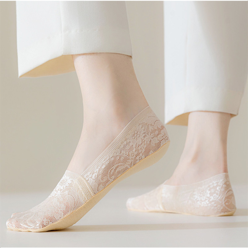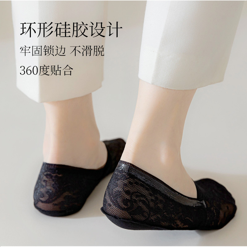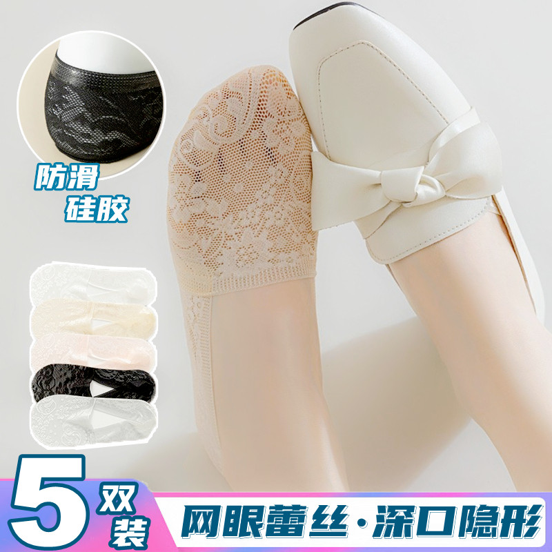 【5双装】蕾丝船袜女防滑不掉跟夏季薄款透气隐形袜高跟单鞋袜子