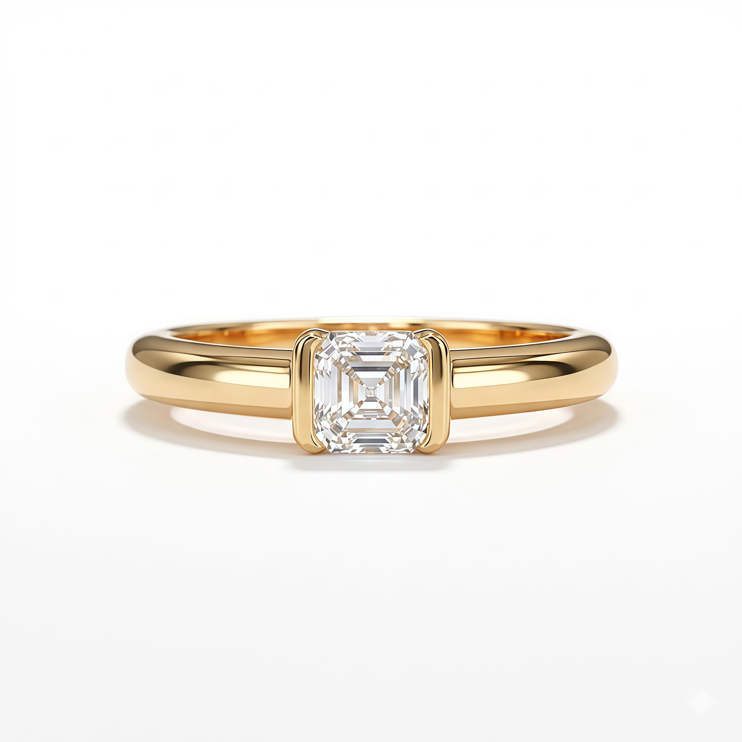 蕾迪【枕方糖】1.2克拉阿斯切回形意大利工艺高级百搭香槟金戒指