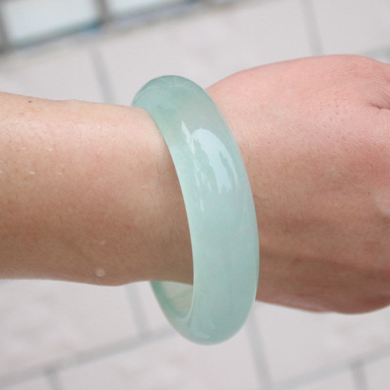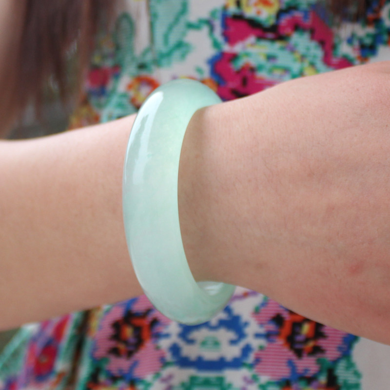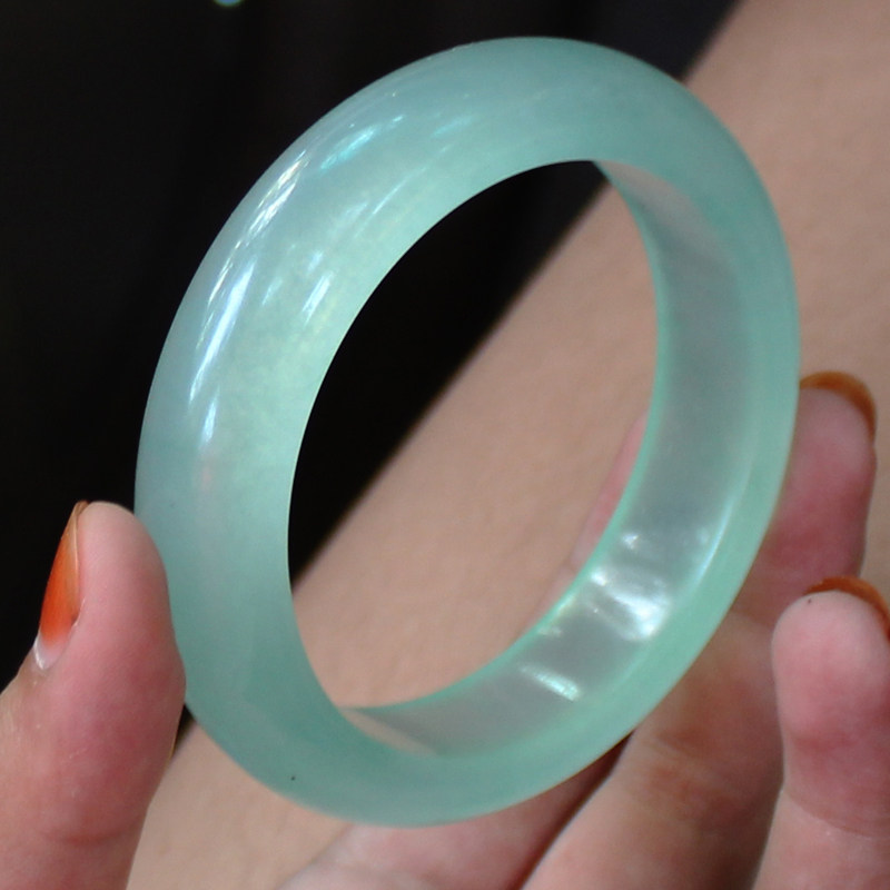 天然正品缅甸冰种A级淡绿翡翠色玉手镯女 少女款冰透秀气真玉镯子