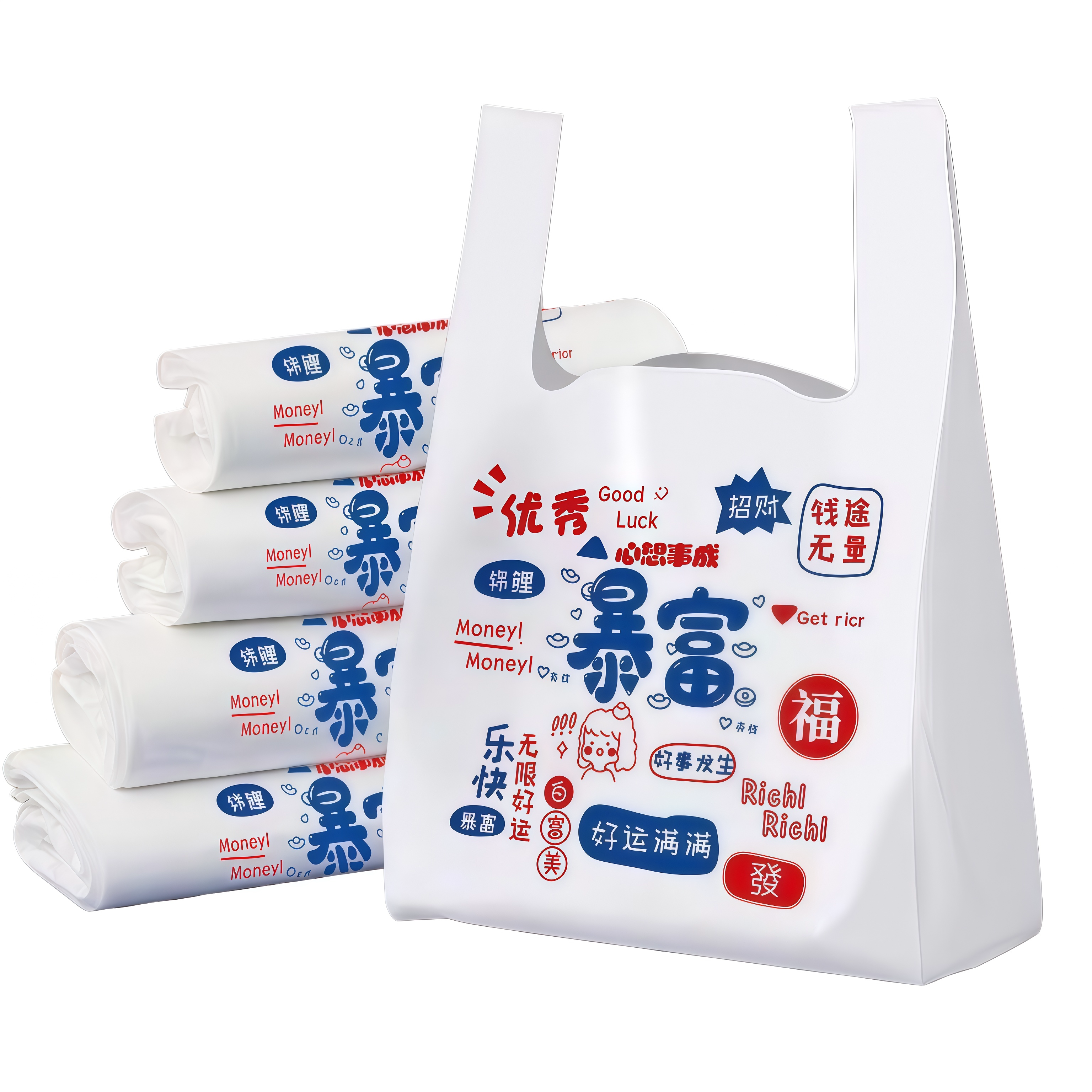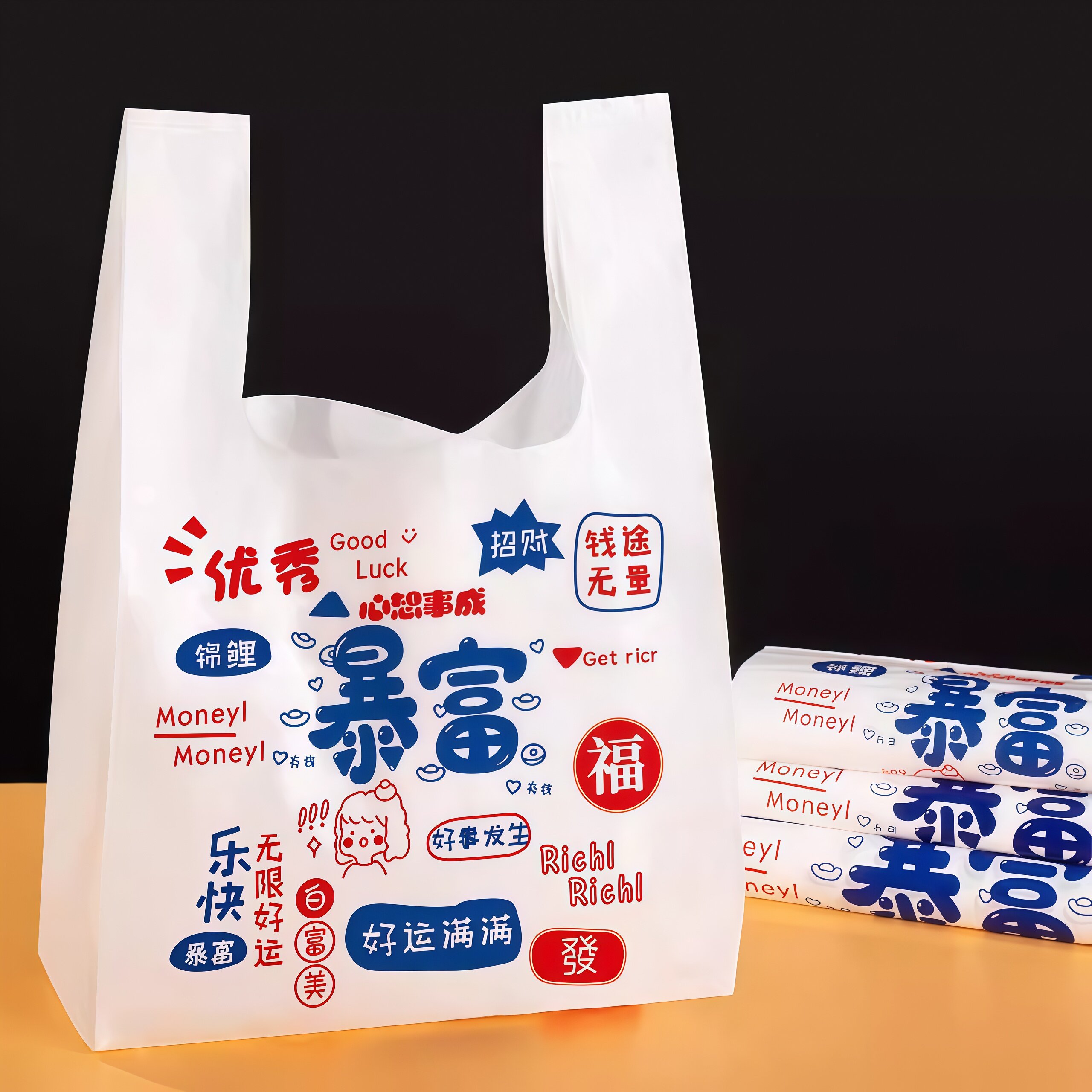 商用超市背心袋食品级加厚外卖打包袋批发暴富背心式手提塑料袋子