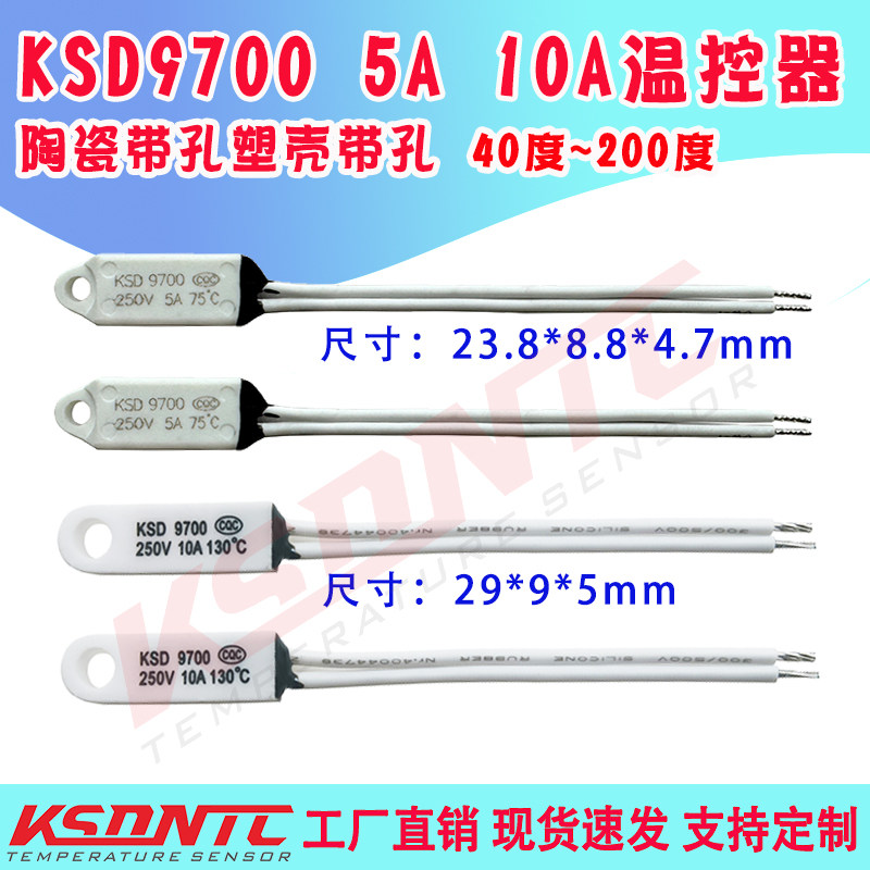 KSD9700带孔陶瓷壳带孔塑壳40-240度暖风机投影仪专用温控器10A5A