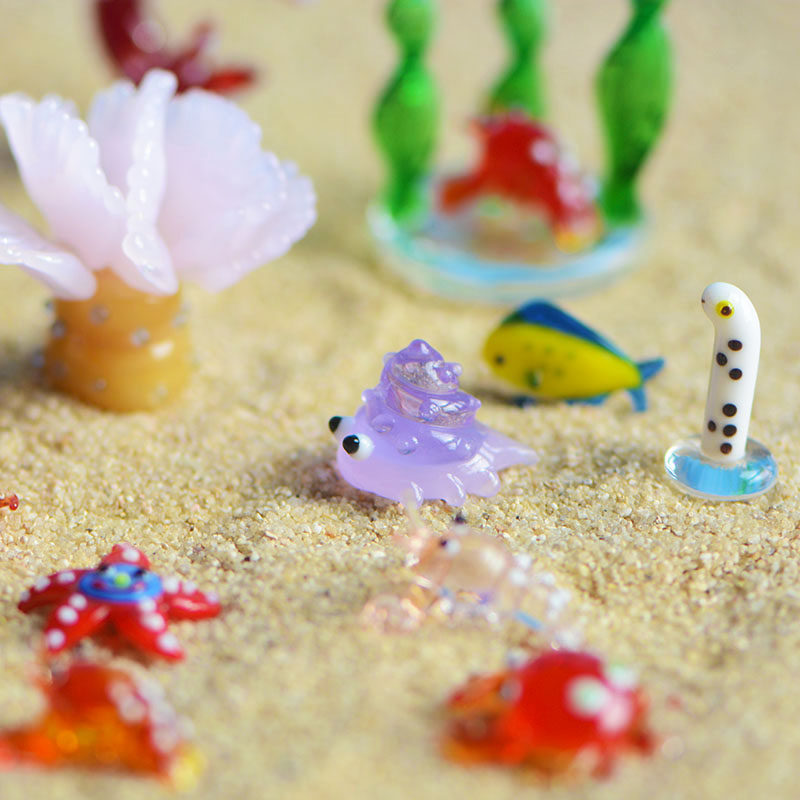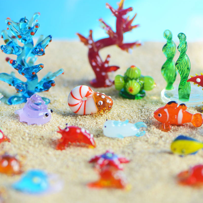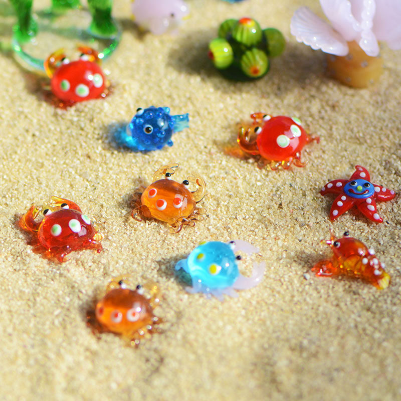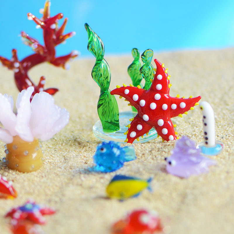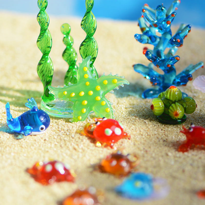 手作琉璃玻璃摆件螃蟹水草海星小鱼海洋生物动物微景鱼缸装饰造景