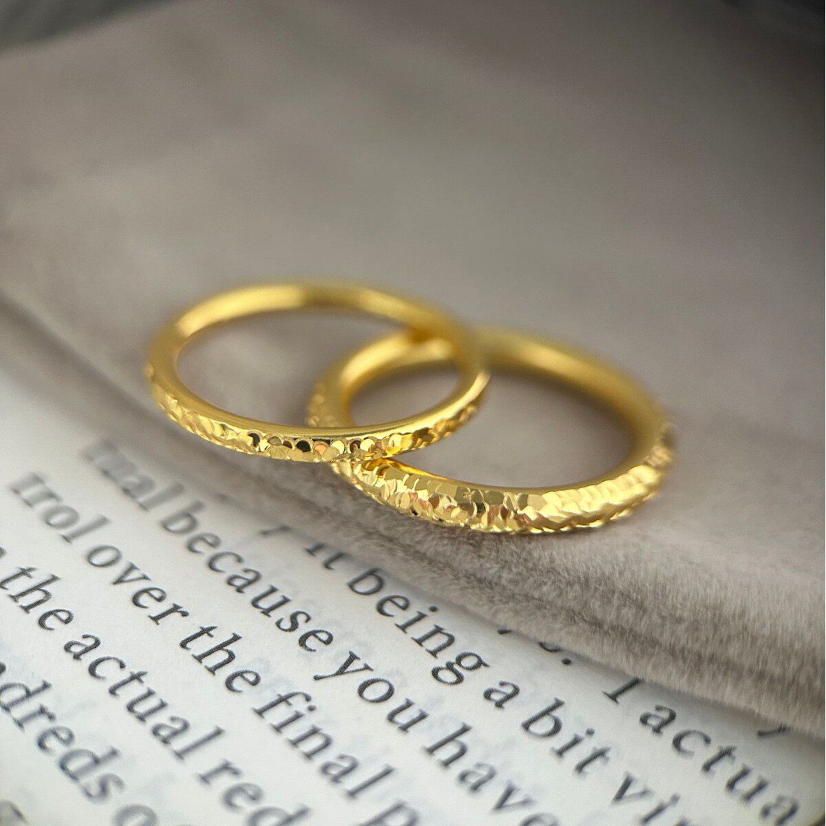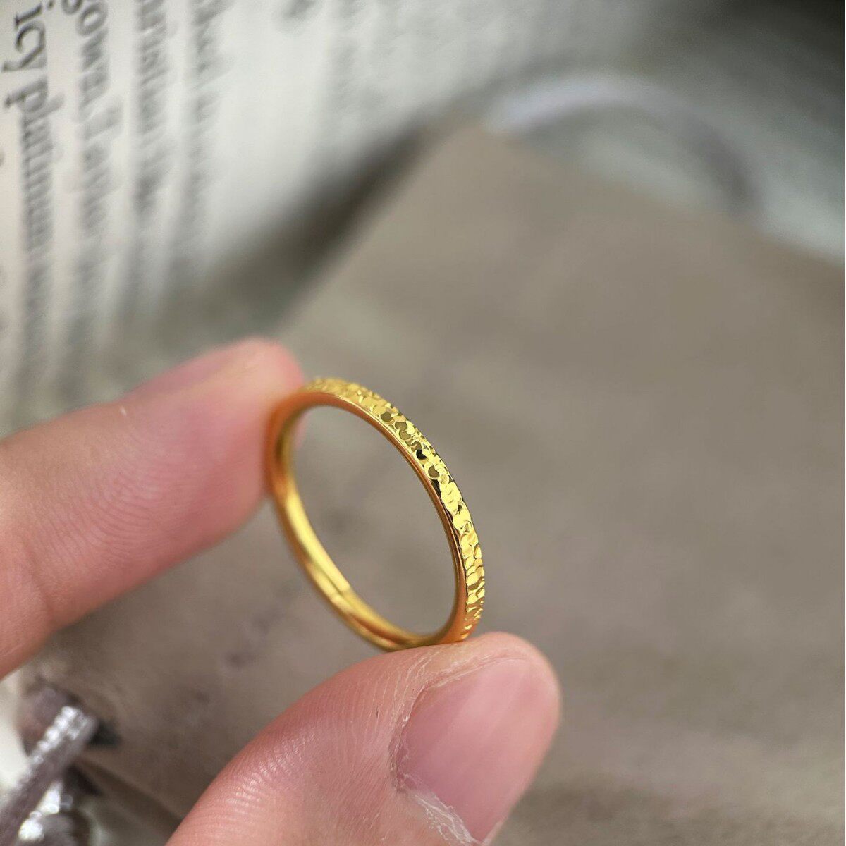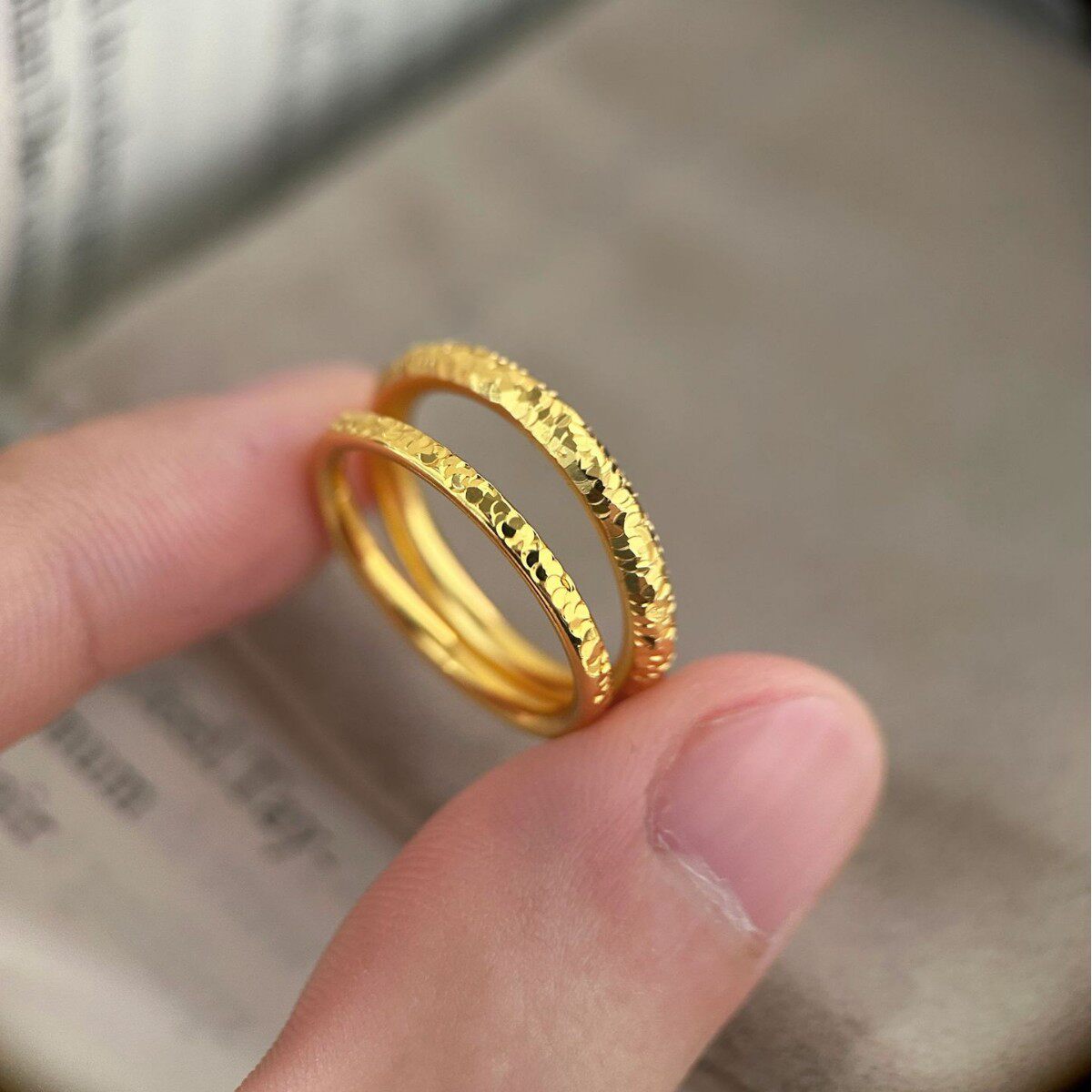 金店款越南沙金古法碎碎金圆条戒指亮面实心素圈闭口仿真金色指环