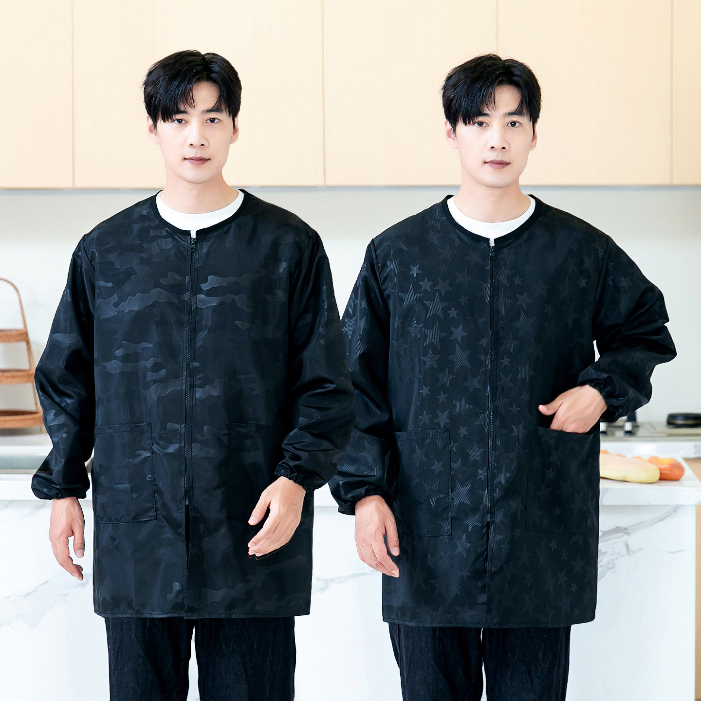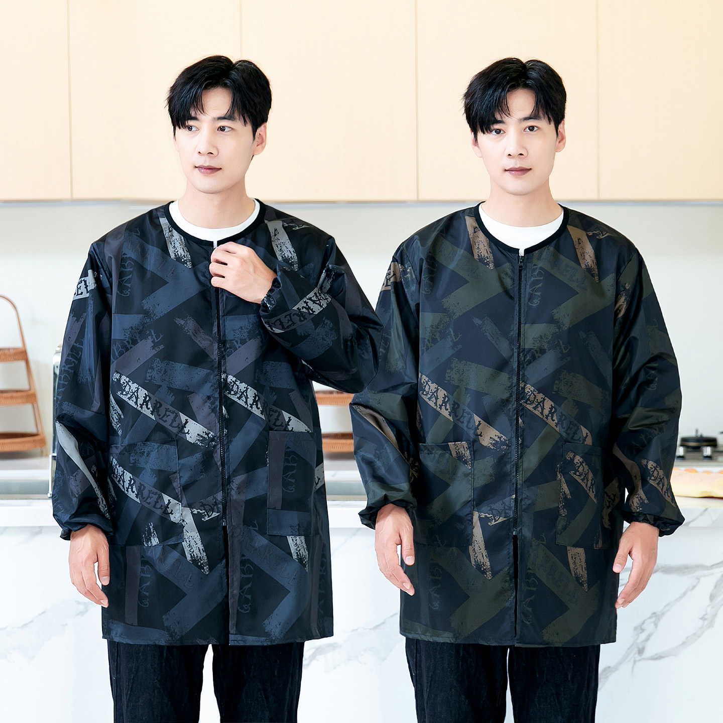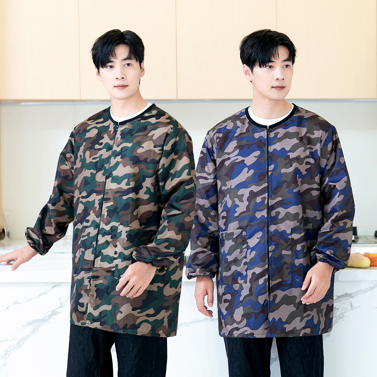 迷彩罩衣男长袖防水防油厨房家用围裙时尚做饭男士外套大褂工作服