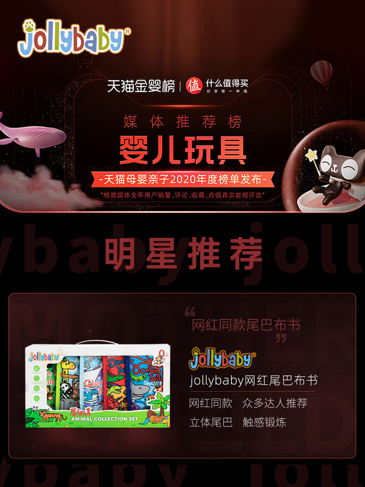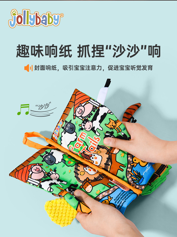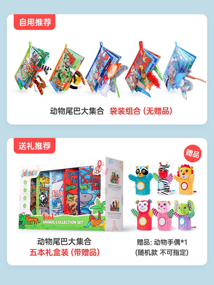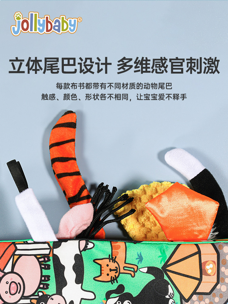 jollybaby动物尾巴布书新生儿礼盒套装婴儿满月礼物早教益智玩具
