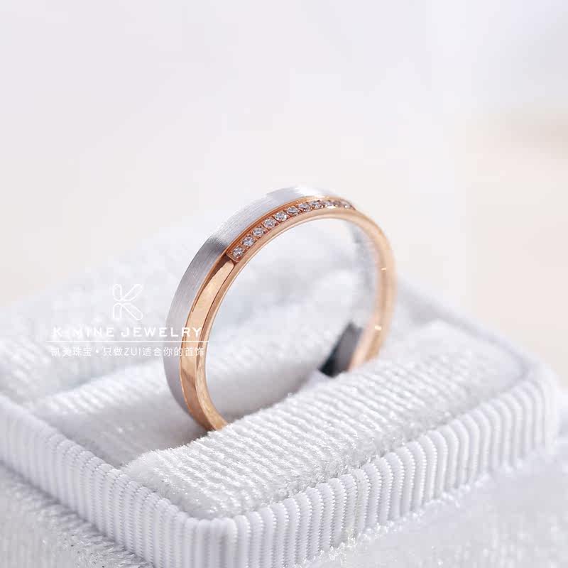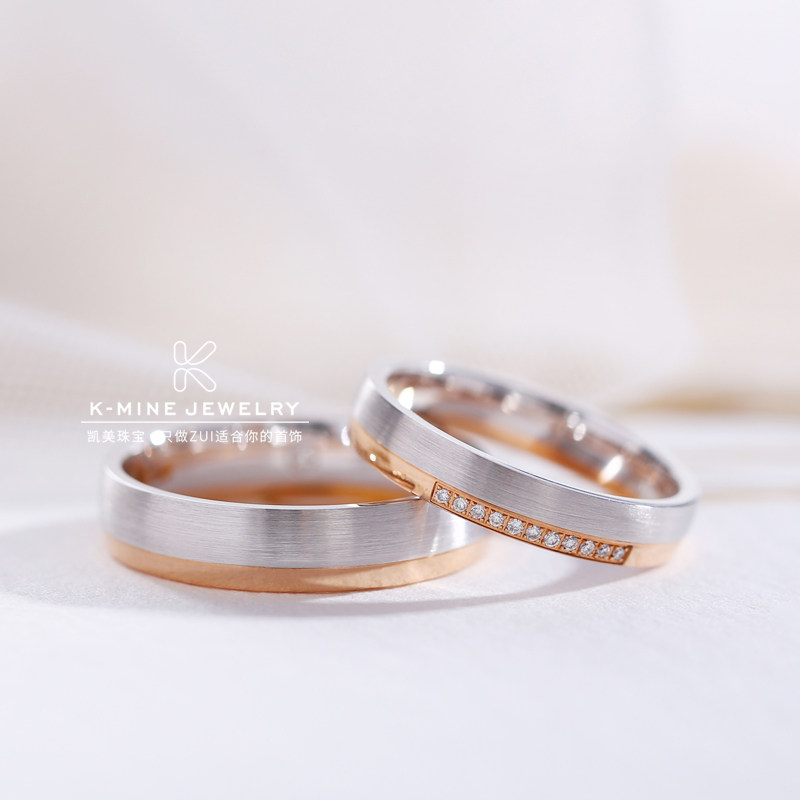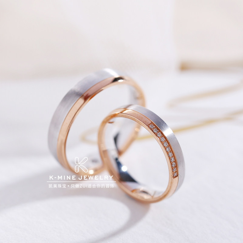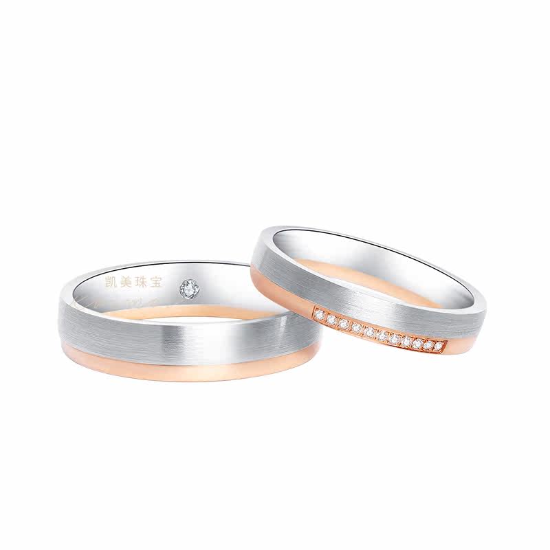 凯美珠宝结婚钻戒正品一对18K金玫瑰金白金分色情侣对戒时尚简约