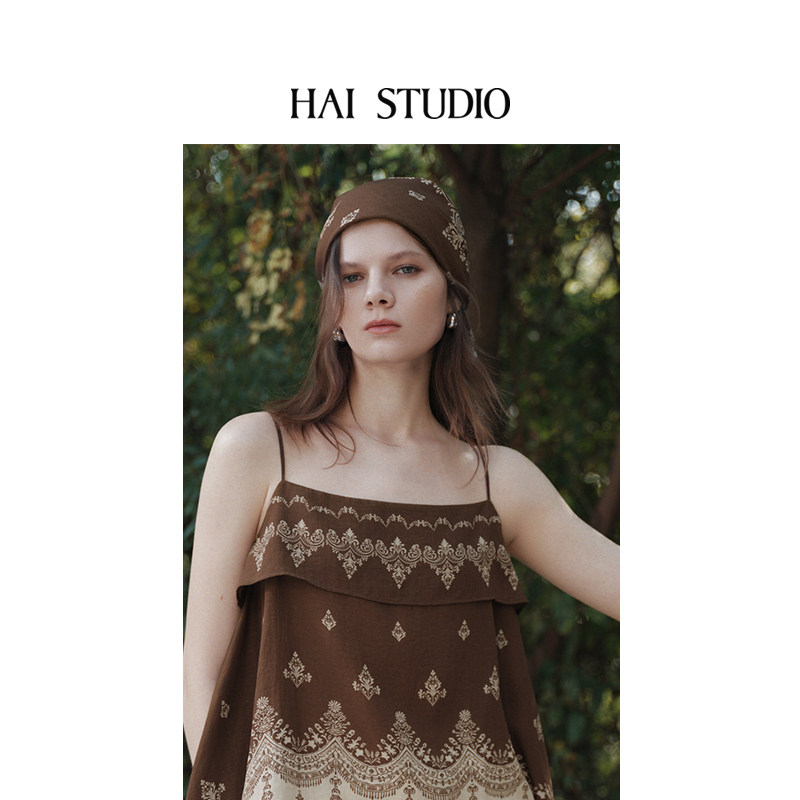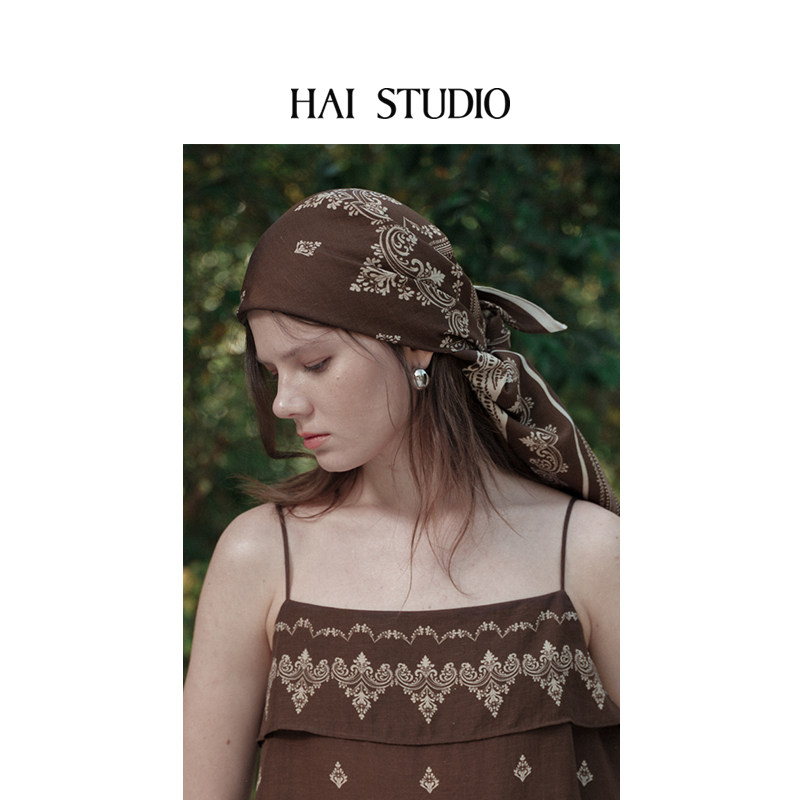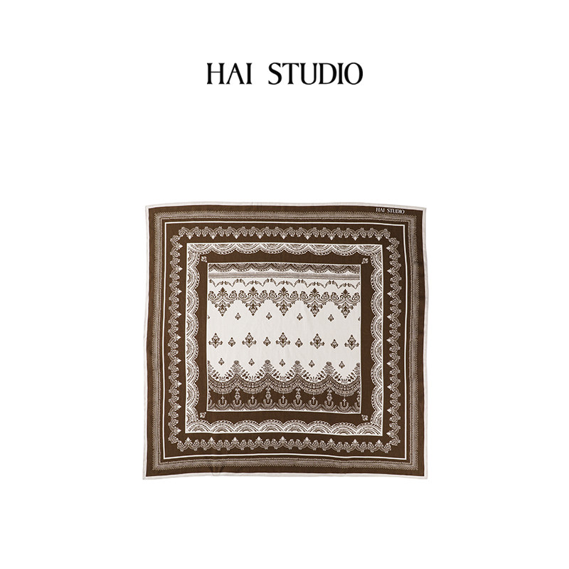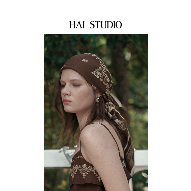 秦岚同款HAI STUDIO 2026早春度假新品 咖色印花方巾复古头巾领巾