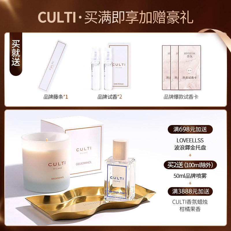 CULTI意大利无火香薰香氛精油持久扩香卧室情人节送女生生日礼物