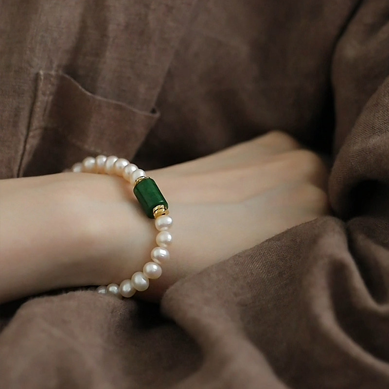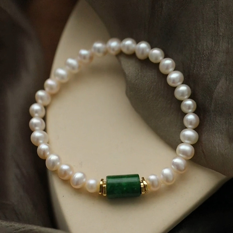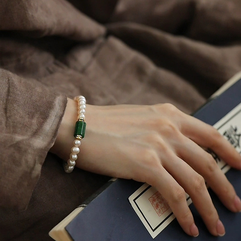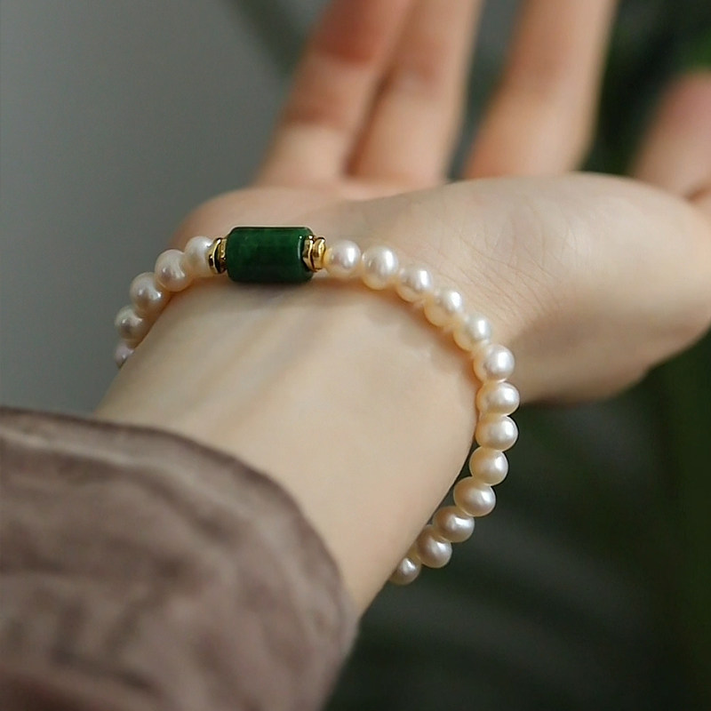 珍氏珠宝天然淡水珍珠手链女款 新中式干青翡翠高级精致手串手饰