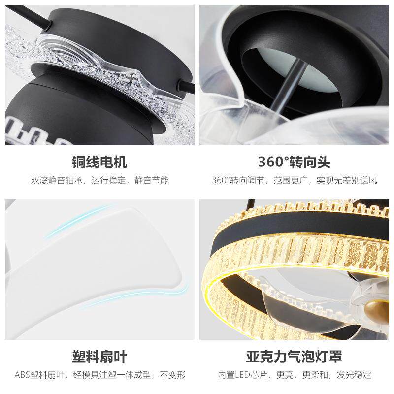 摇风扇灯餐厅卧室吊扇灯带现风头扇一体吊42-YX10无灯极调光遥控