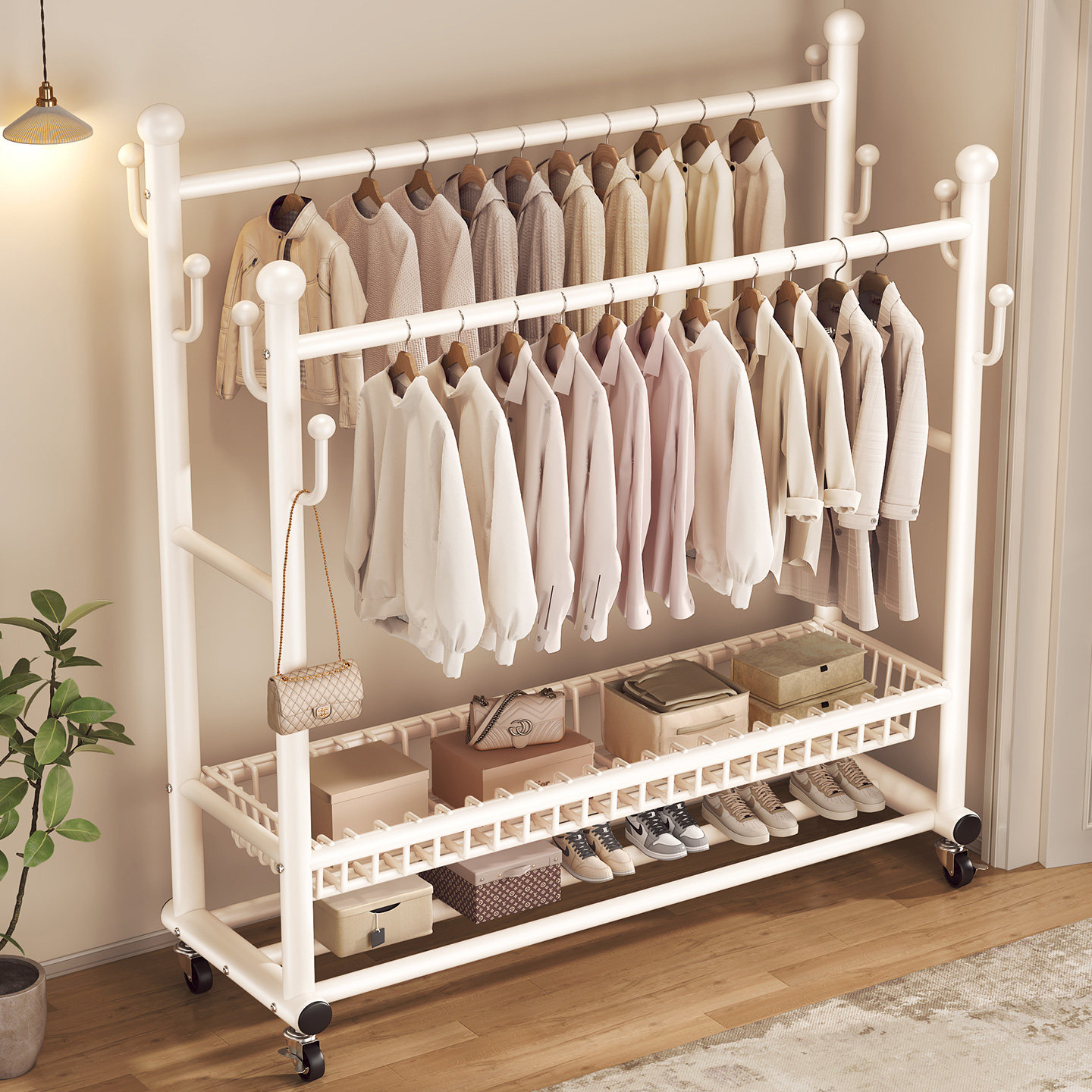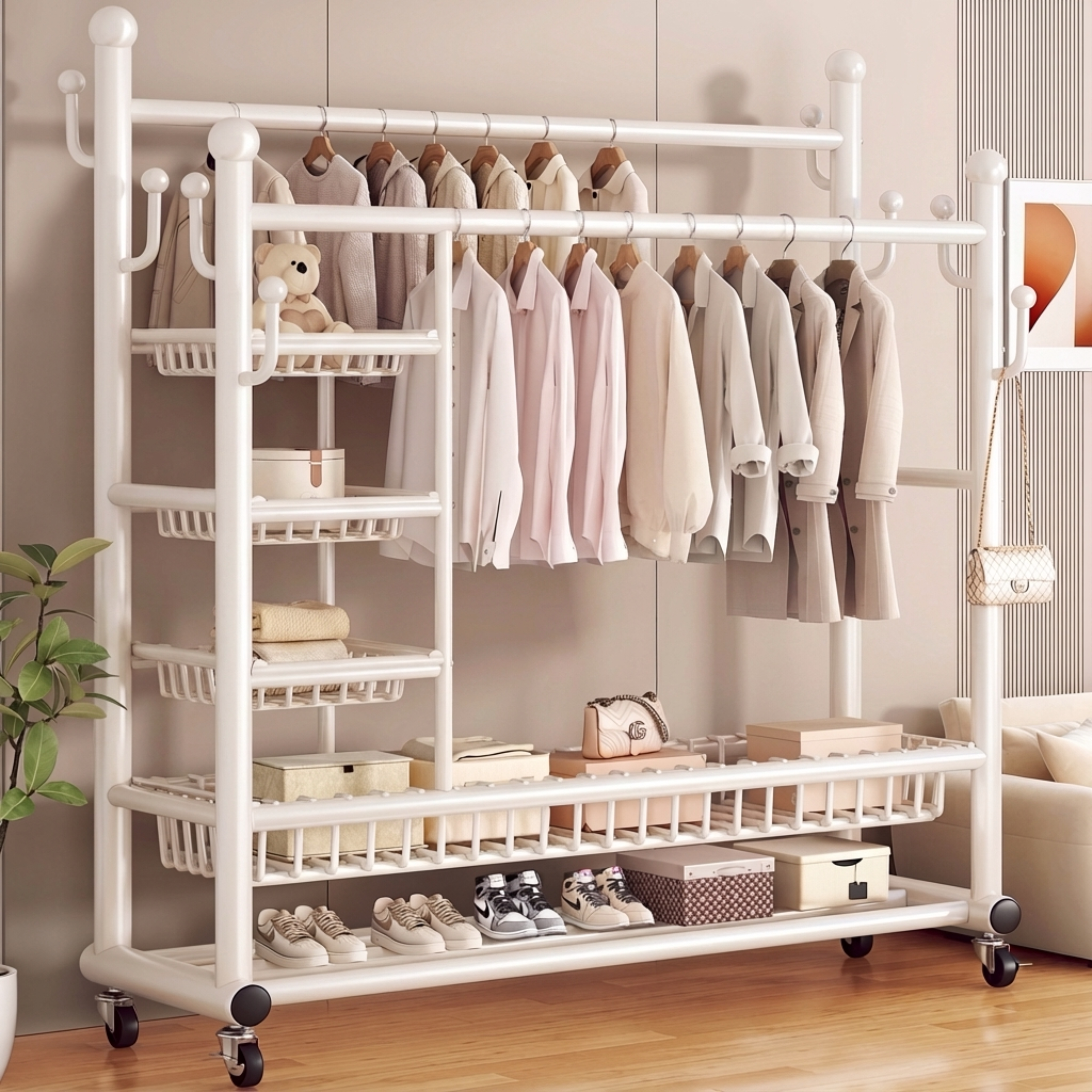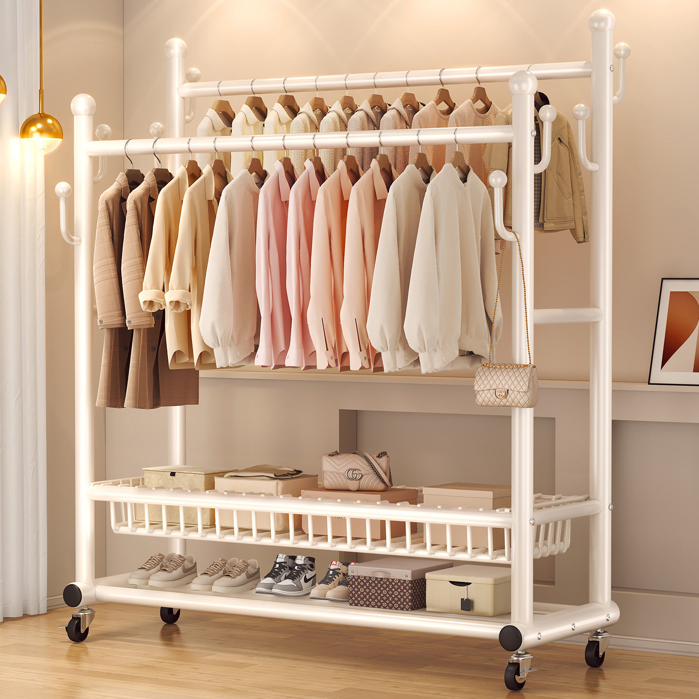 落地晾衣架室内家用可移动房间挂衣服架卧室多功能床边简易衣帽架