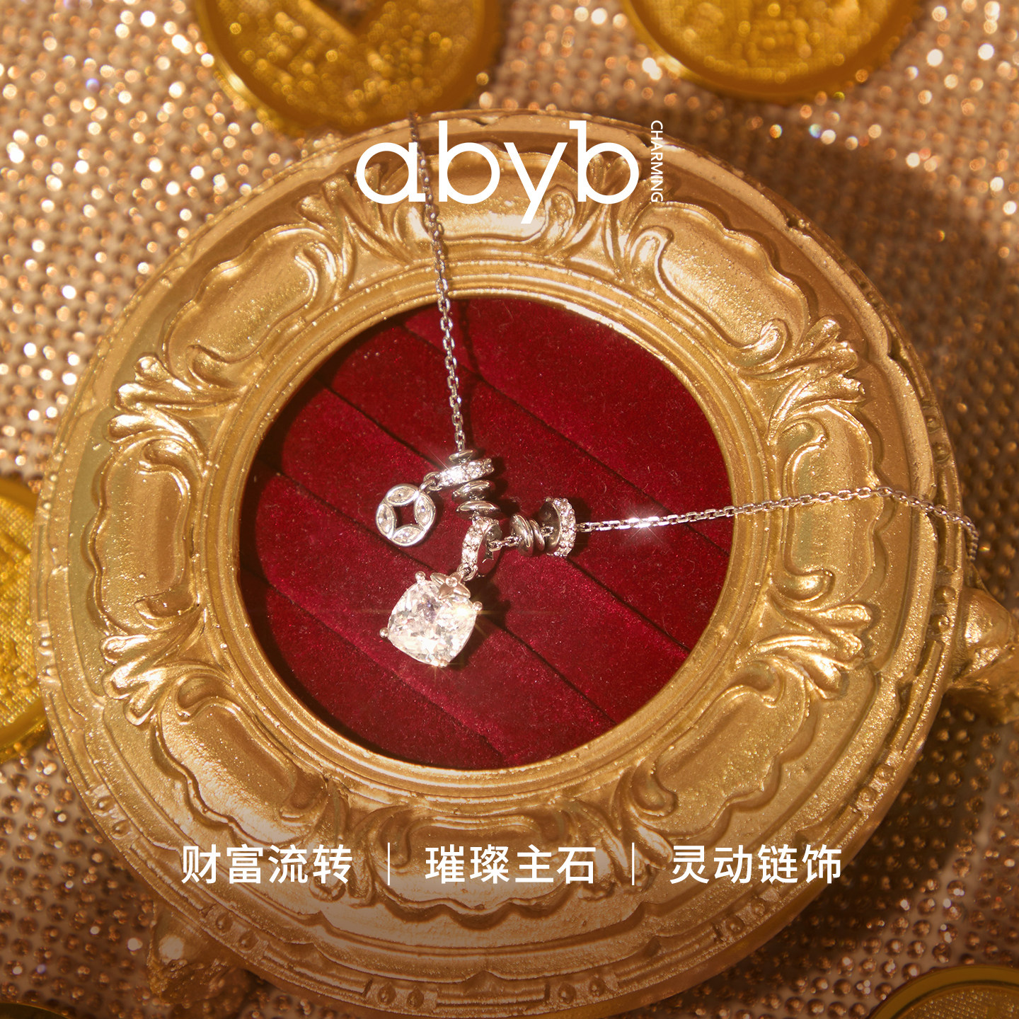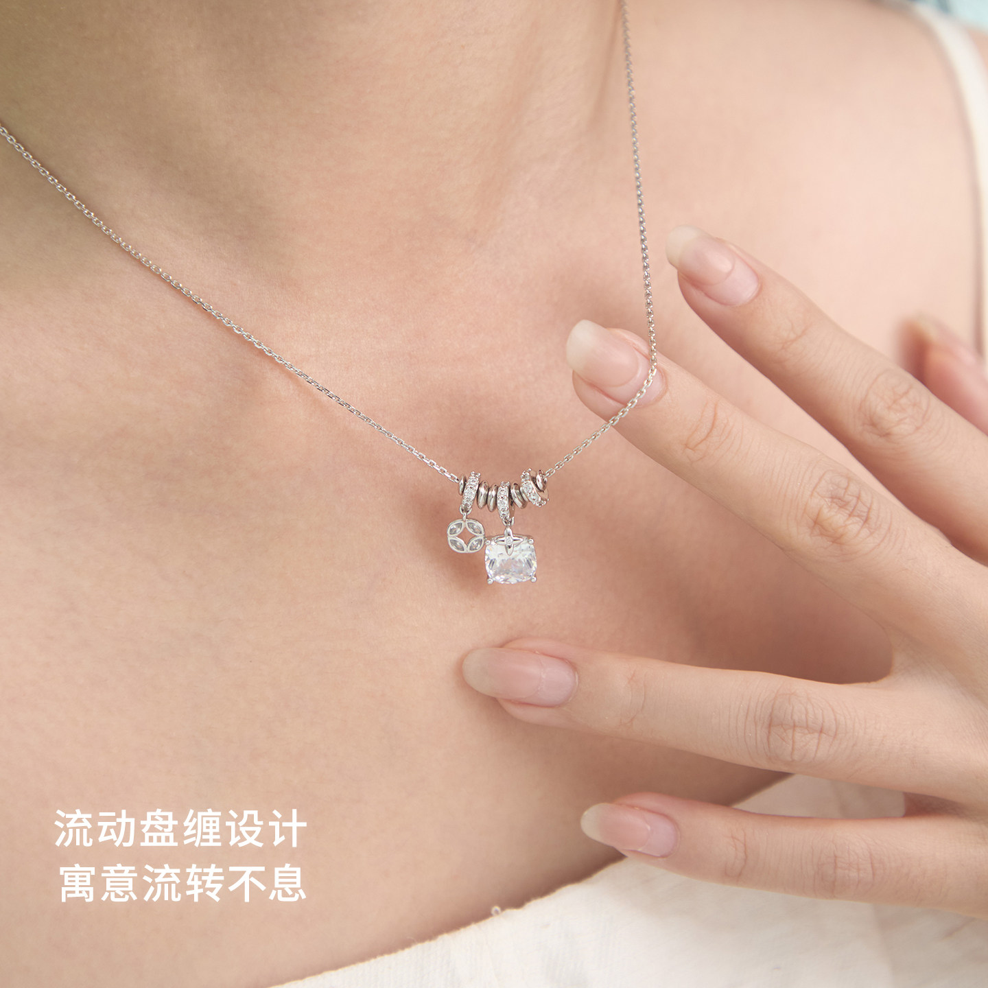 方枪枪推荐abyb流光盘缠项链小众轻奢锁骨链方钻吊坠颈链生日礼物