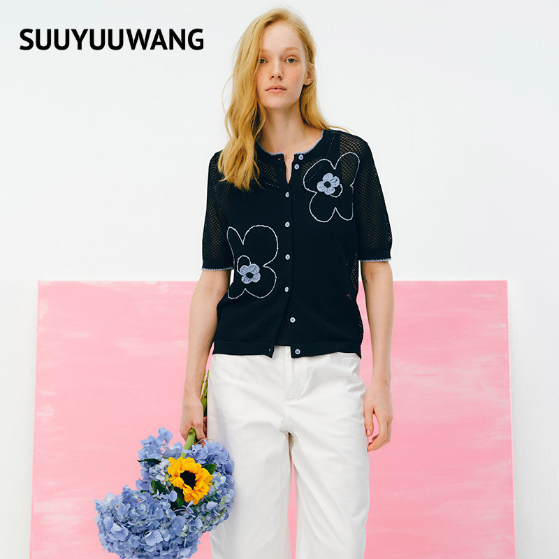 SUUYUUWANG26夏圆领镂空组织开衫SYZSE2K0694
