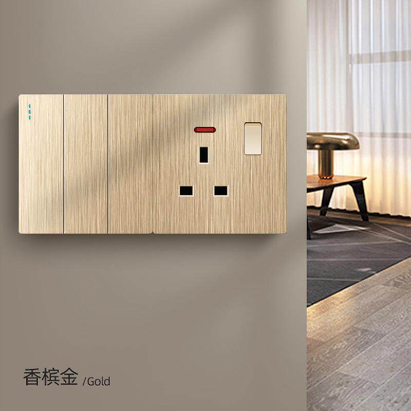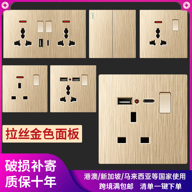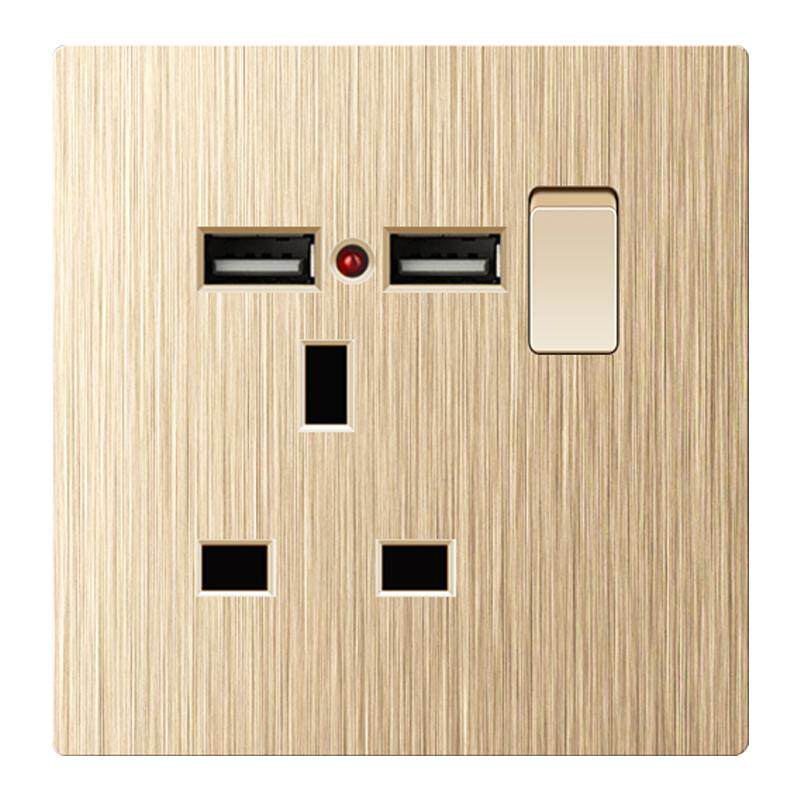 港版英式13A英标USB插座面板电制灯掣多功能电掣灯开关制面拉丝金