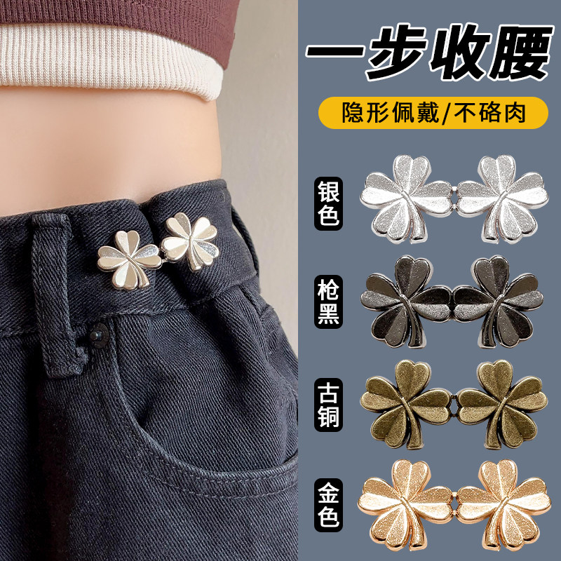 四叶草牛仔裤扣子收腰神器裤子大了改小腰围裤腰收紧纽扣别针配饰
