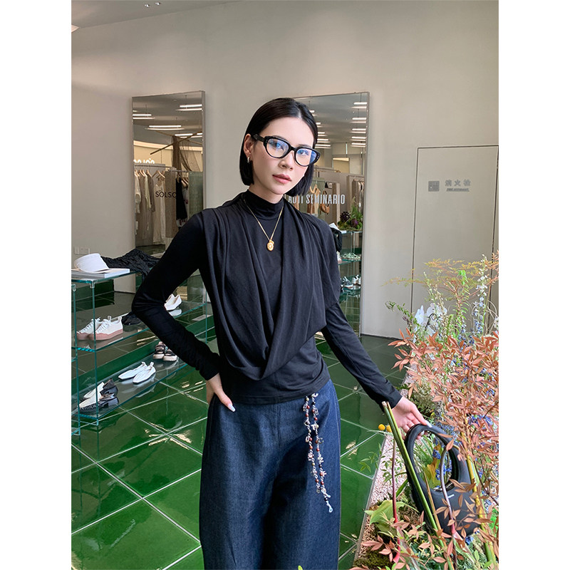 【特价款不退换】买手店DEEPMOSS设计师品牌24秋冬新款环肩荡褶上