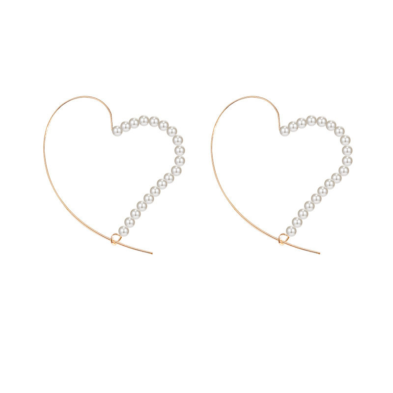 简约爱心珍珠夸张耳环女2020新款潮冷淡风耳钉网红耳饰女气质韩国