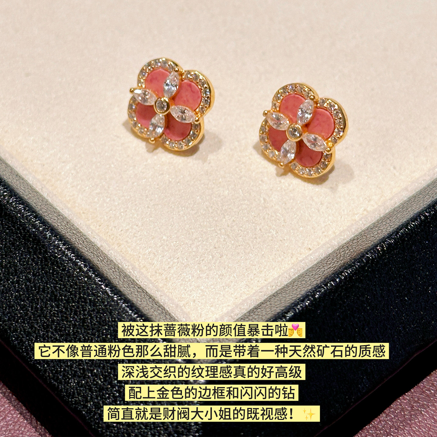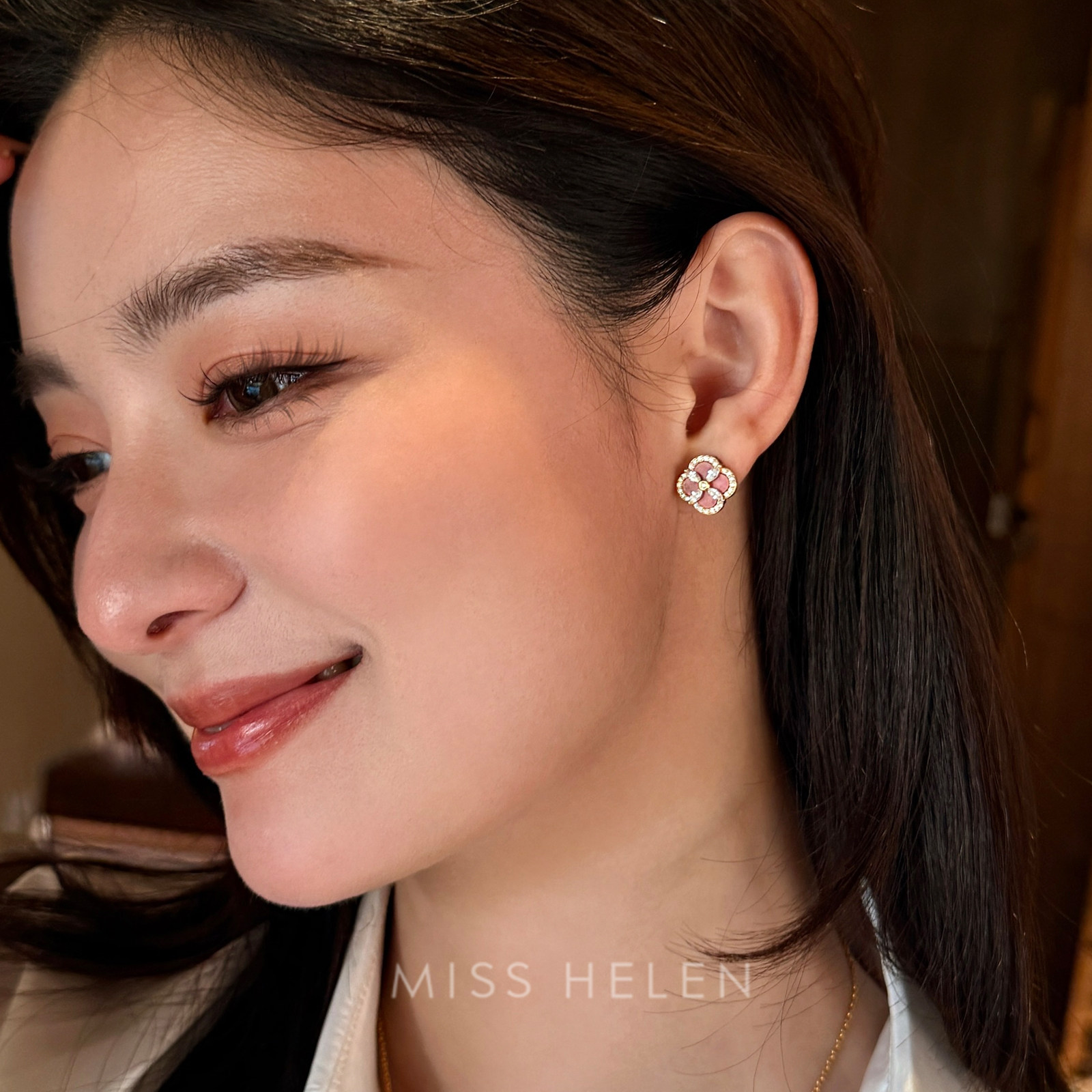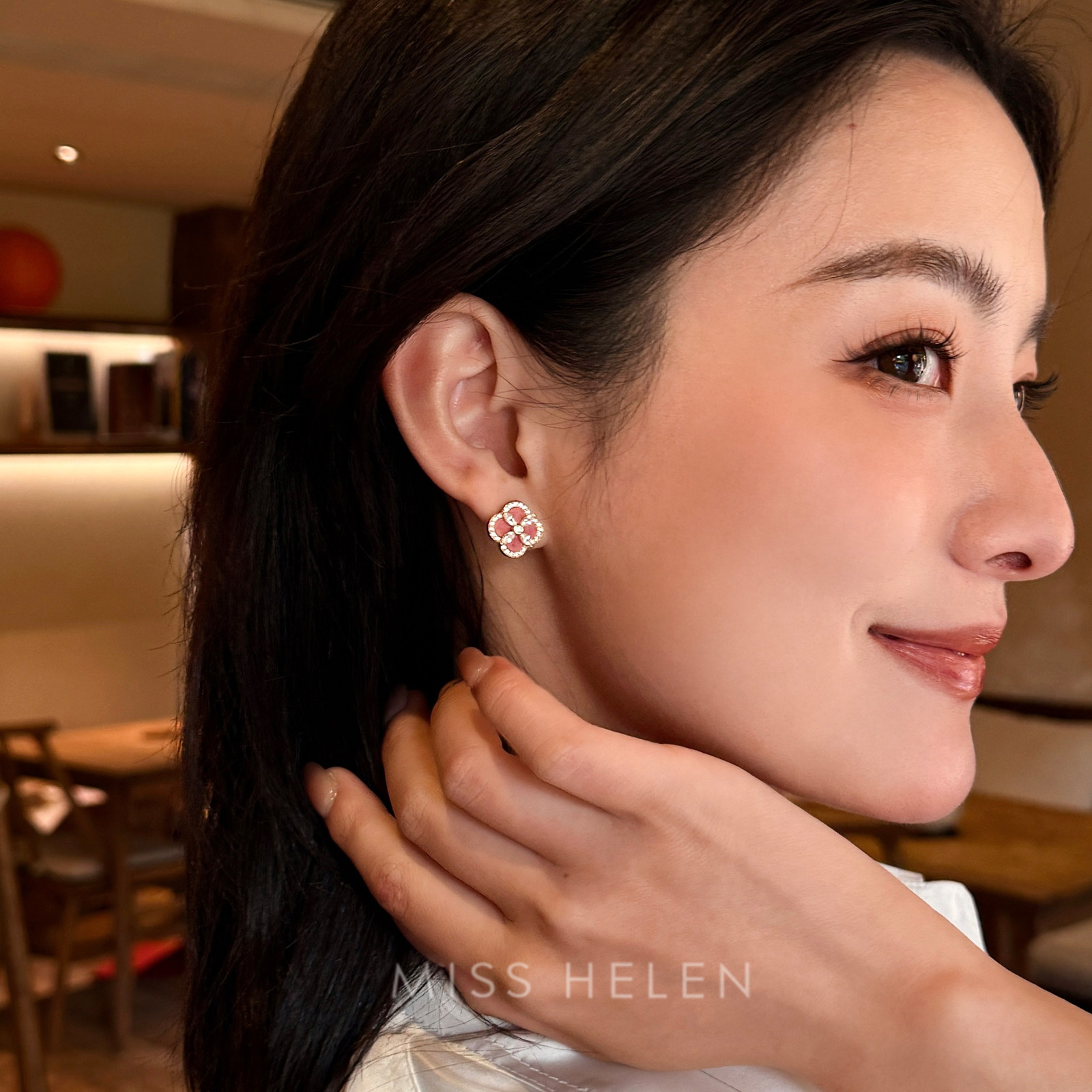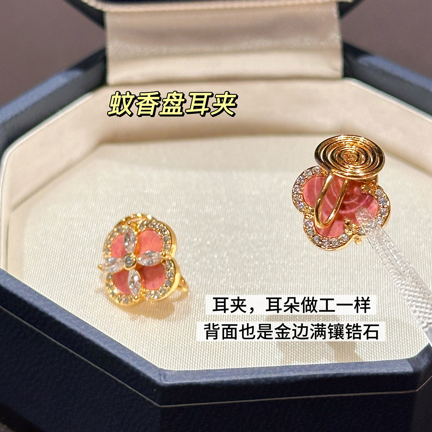 MISS HELEN 蔷薇四叶草耳钉女蚊香盘耳夹气质通勤百搭生日礼物
