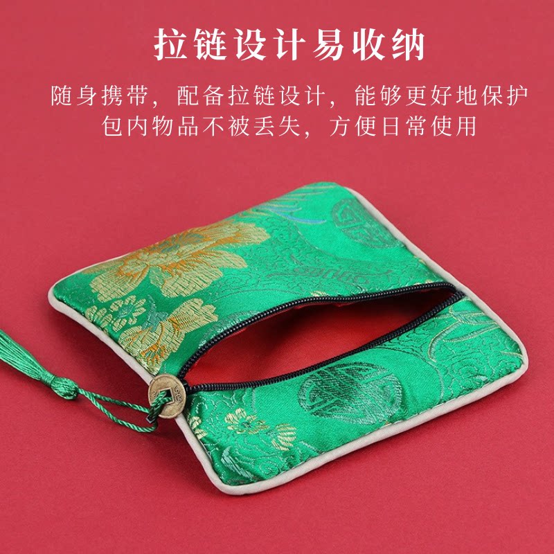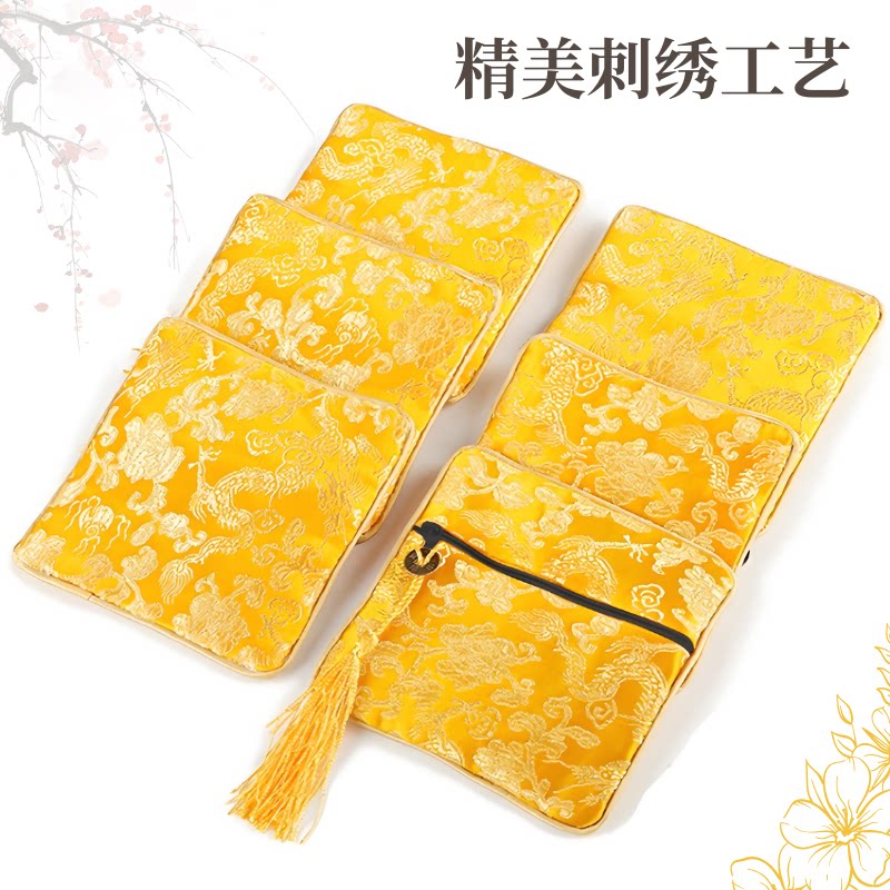锦囊拉链方包精美刺绣工艺收纳佛珠珠宝首饰文玩拉链铜钱流苏设计