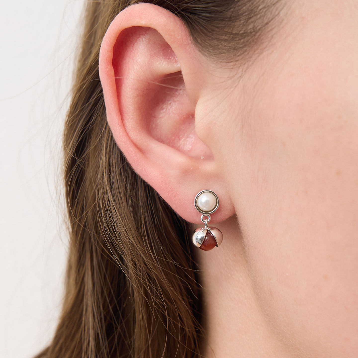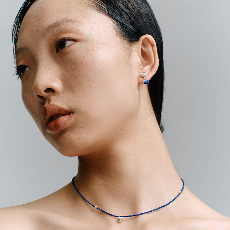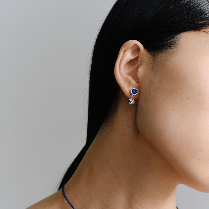ZHAO ACAP珍珠青金石南红玛瑙双珠花椒925银耳钉ab款简约百搭耳环
