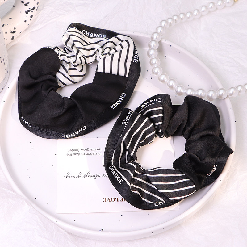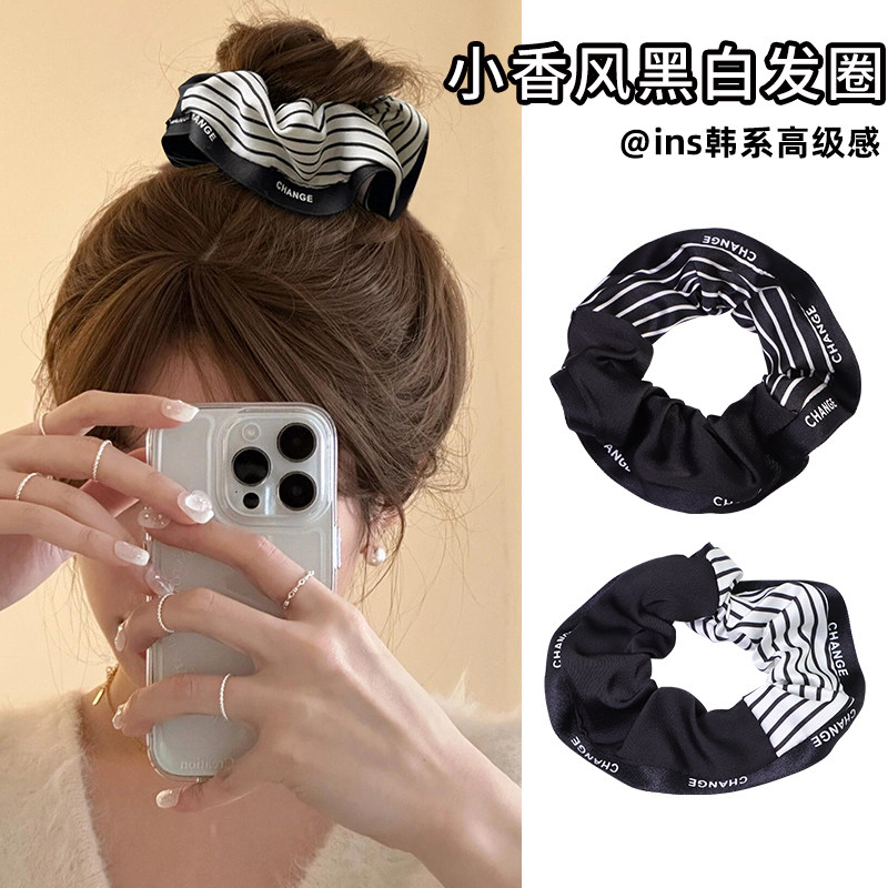 复古黑色条纹双面发圈大肠圈头绳气质盘发马尾皮筋女扎头发绳法式