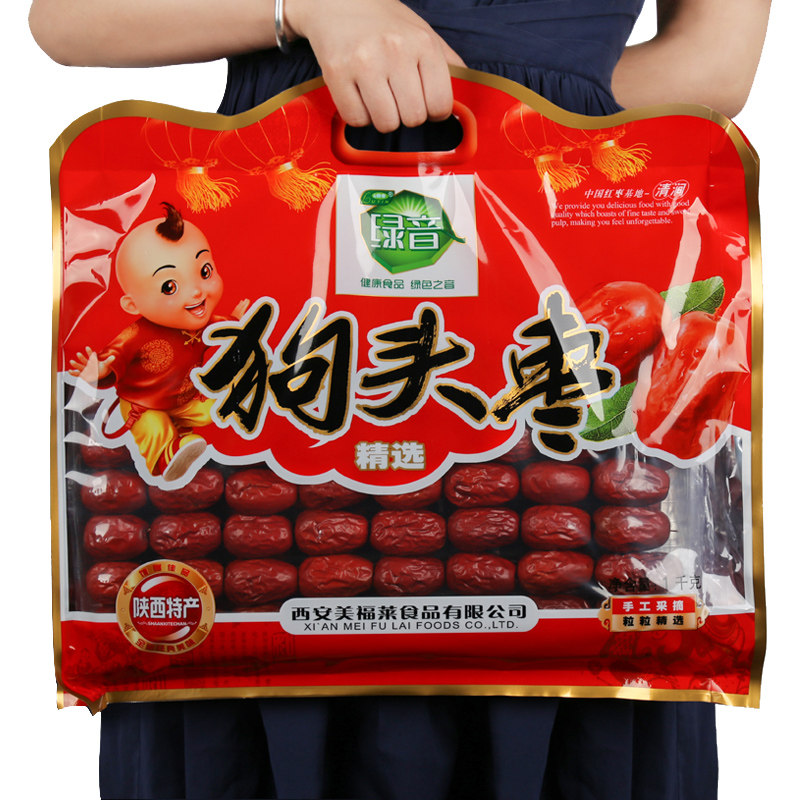 绿音1000g礼袋狗头枣 陕西特产一级红枣西安延安狗头大枣特产枣级