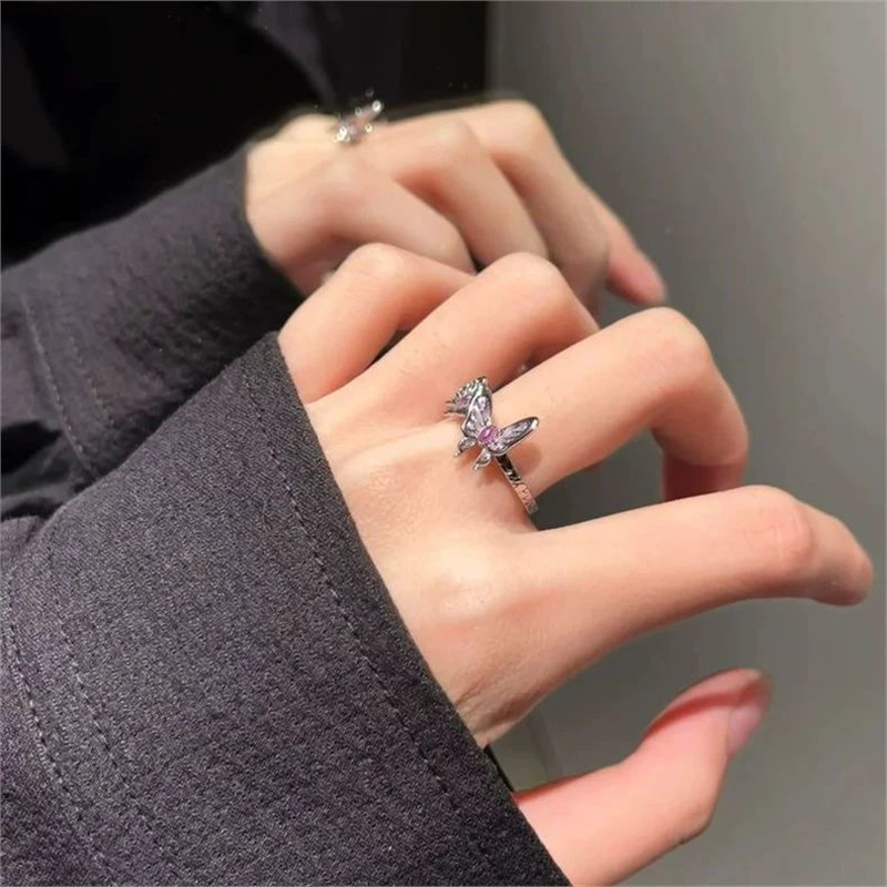 《鬼灭之刃》动漫联名周边蝴蝶忍戒指紫色鎏彩设计感时尚百搭首饰