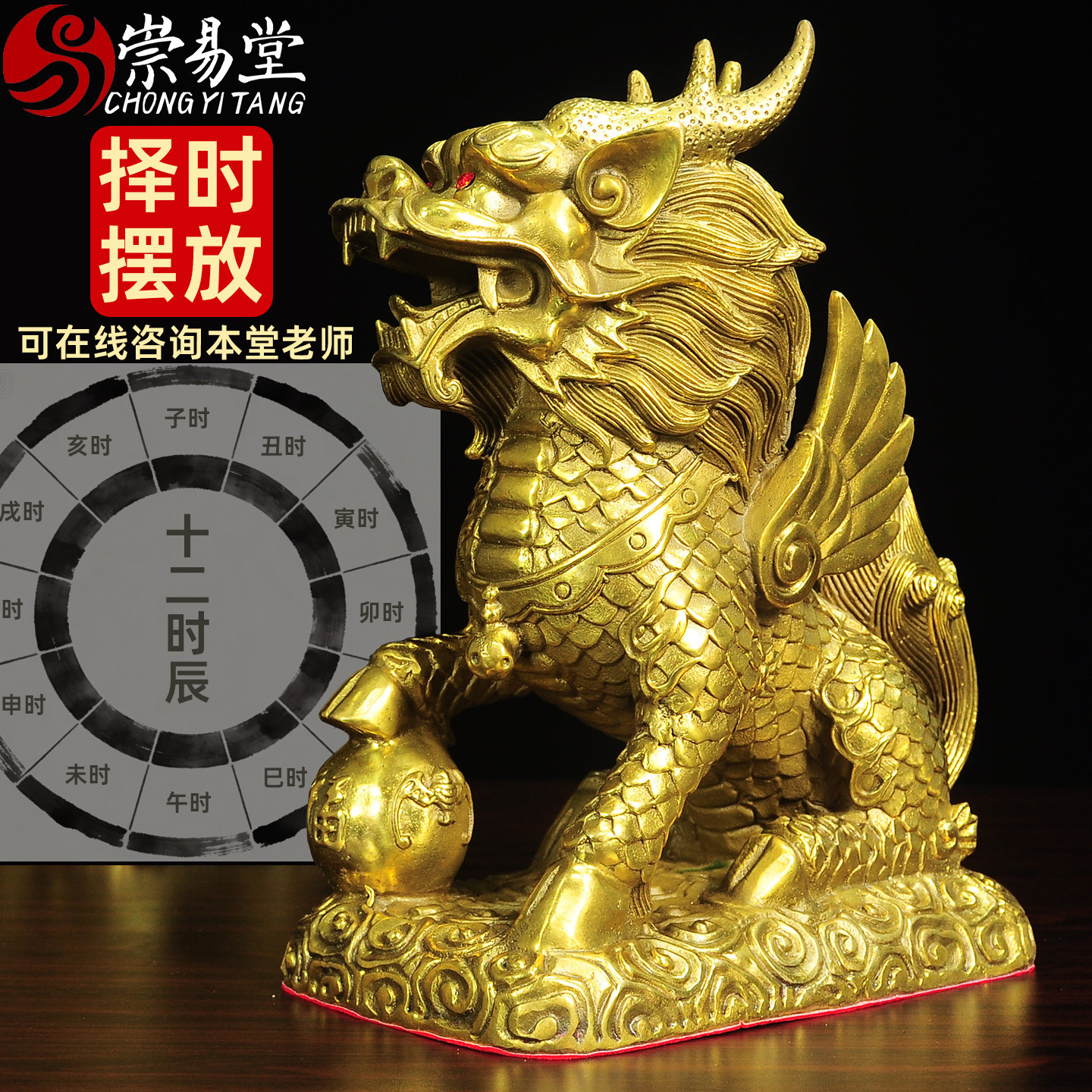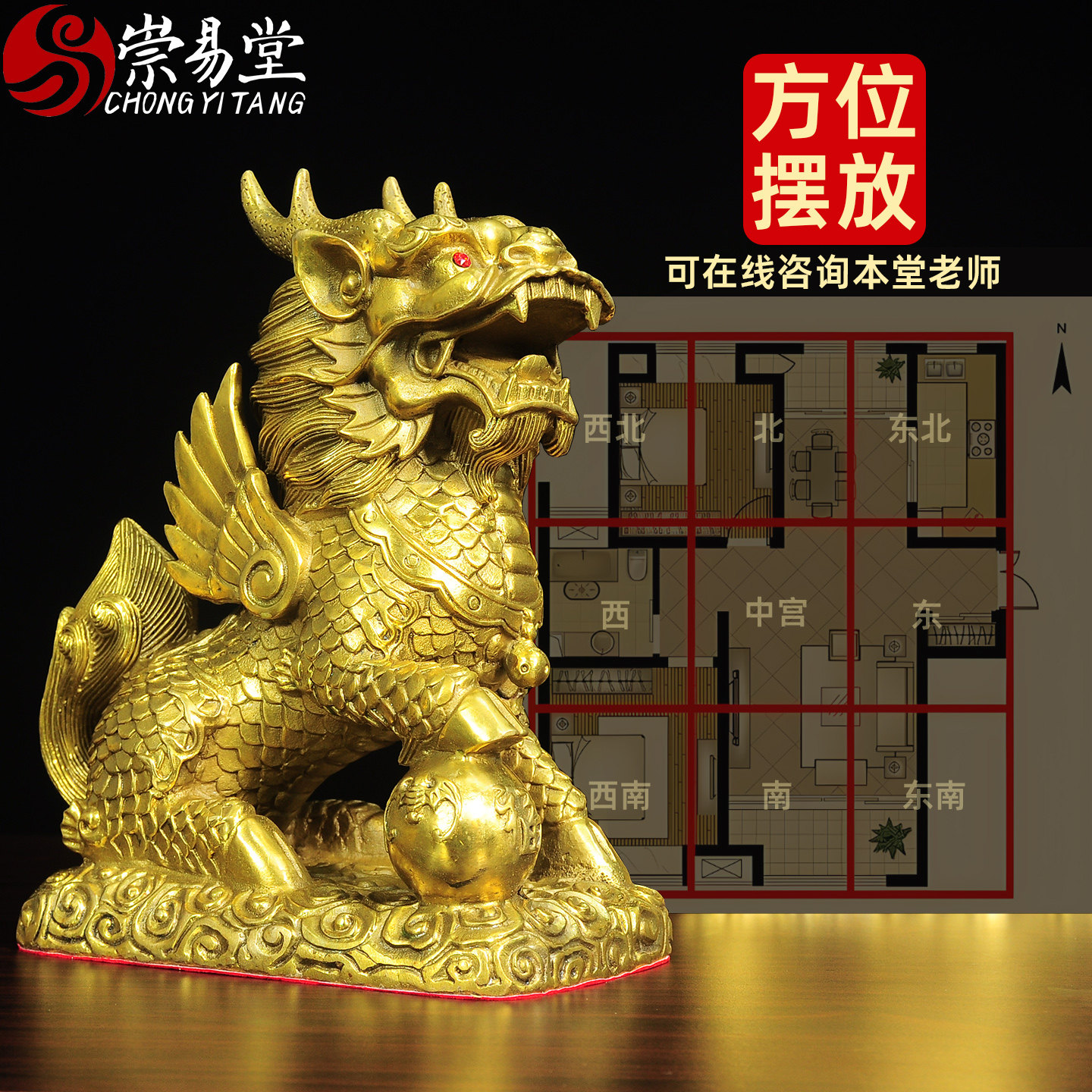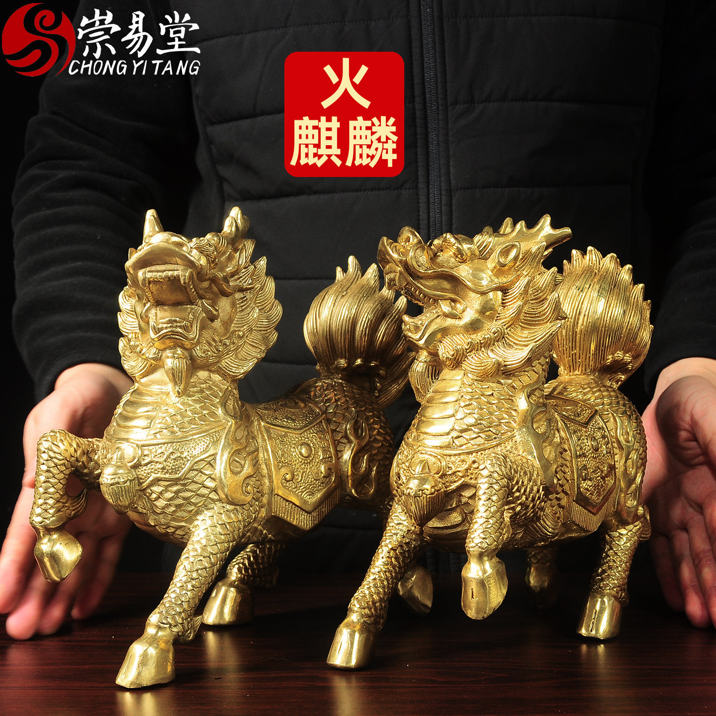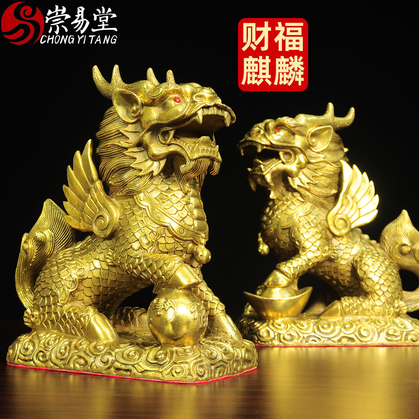 崇易堂麒麟摆件一对全铜八卦麒麟家居办公室酒柜火麒麟家居饰品