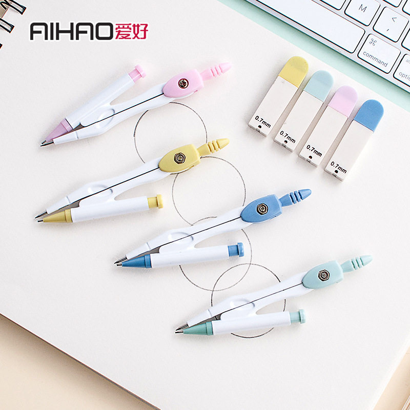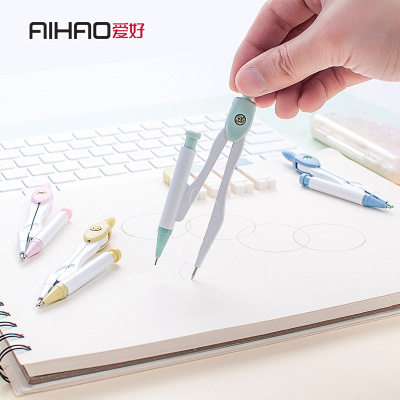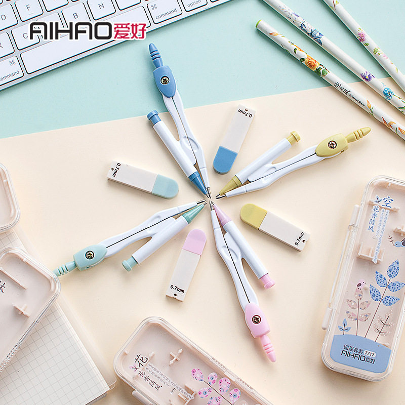 爱好文具小清新可爱圆规套装画圆器 带自动铅笔盒装7717圆规
