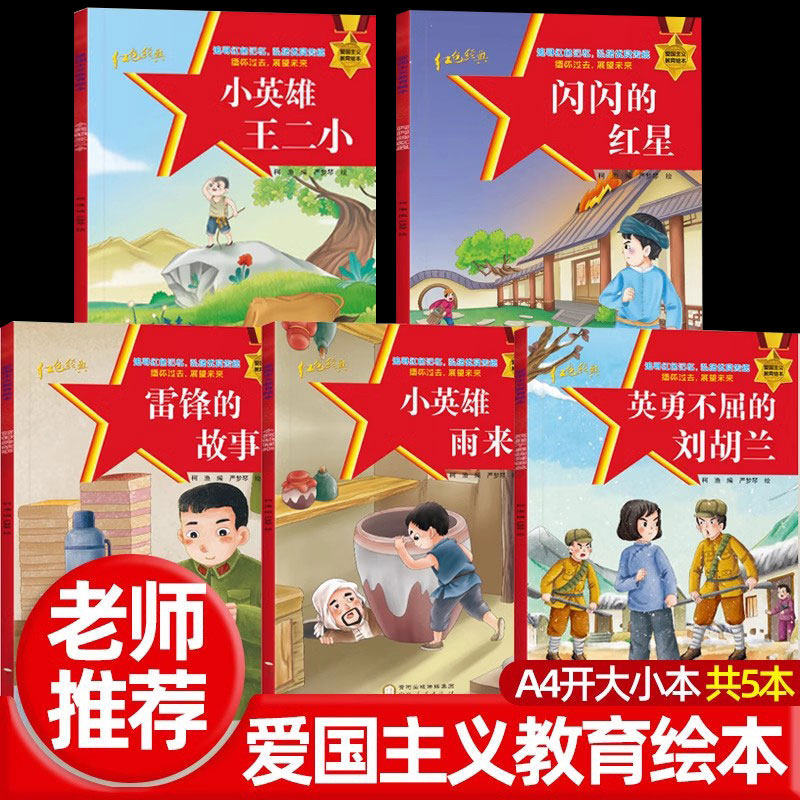 国庆主题5册中国红色经典爱国主义教育绘本故事书3-4-5-6岁以上小英雄王二小雨来闪闪的红星雷锋的故事刘胡兰长征一二年级课外书