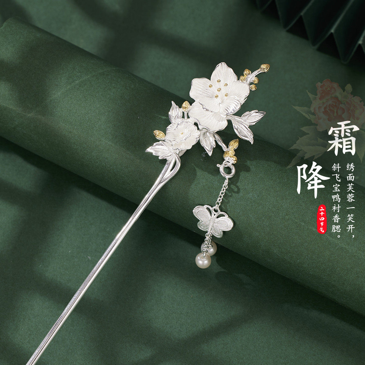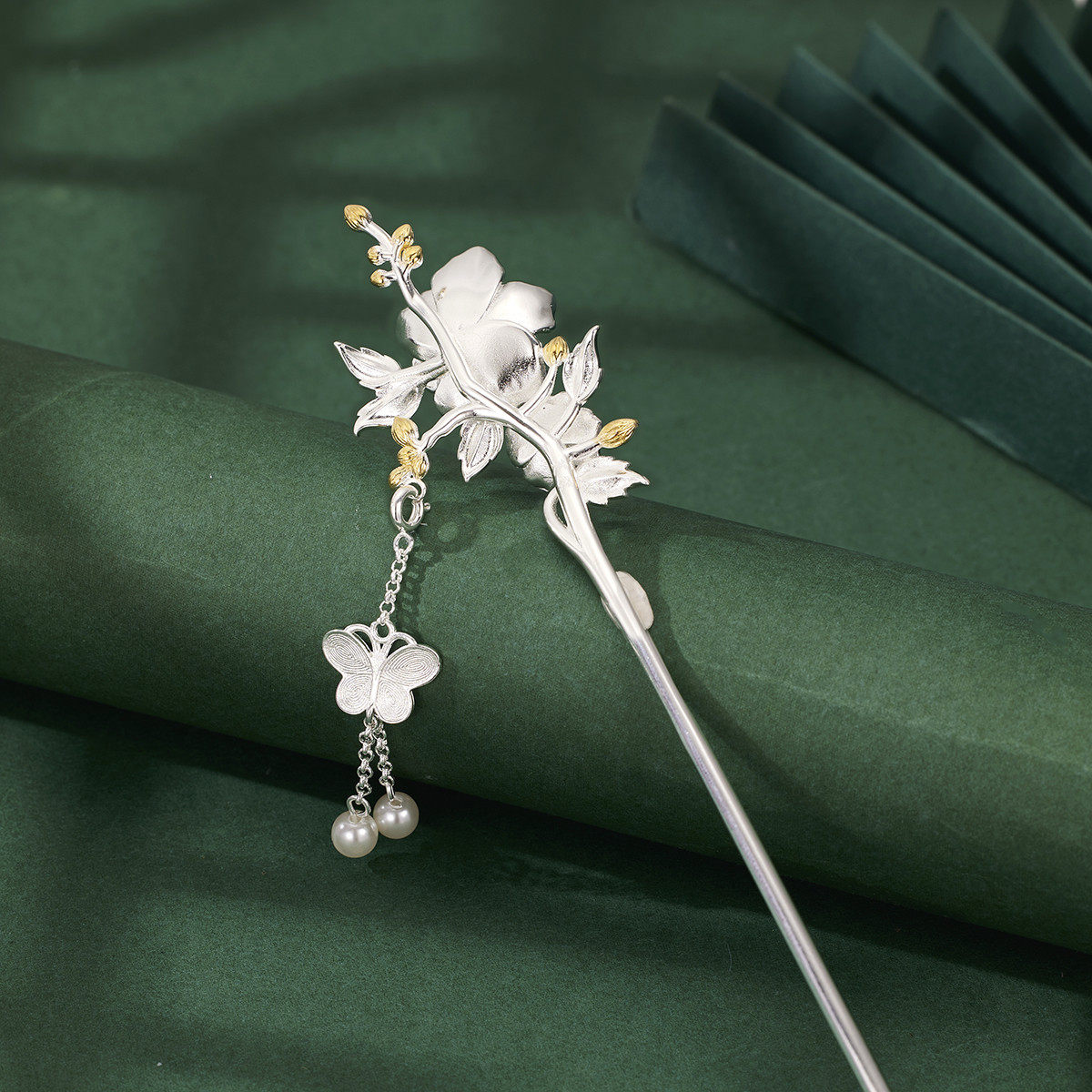 [理想与诗]芙蓉花925银发簪古风 女汉服马面裙流苏步摇新中式簪子